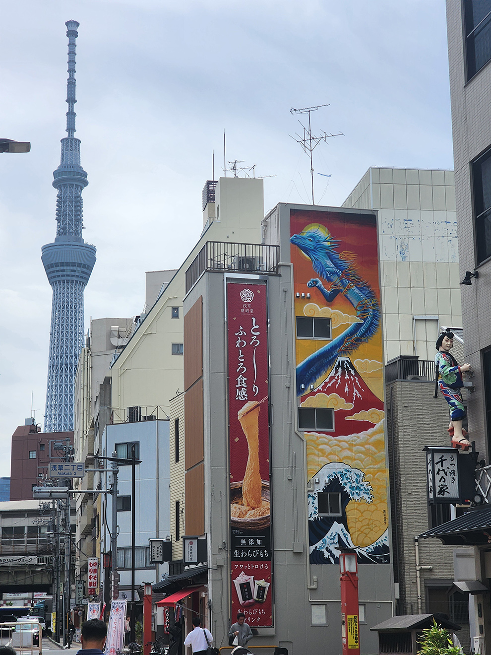 I woke up rather early and couldn't get back to sleep (like last year) so I took an early walk around Asakusa, getting some exploring in before it got busy. I tried to focus a bit more on streets I hadn't explored much before. Though as the morning wore on, I also ended up going around the shopping arcade to look at all the usual tourist shops and snacks. By late morning, I had to return to the hotel and spend a while going over things with the other professor who does the tour with me and a rep from the travel company we're using this year. Once that was done I went back to the shopping arcade to grab lunch at a neat new ume (Japanese plum) focused restaurant I had spotted earlier. Then it was off to the airport to meet students.