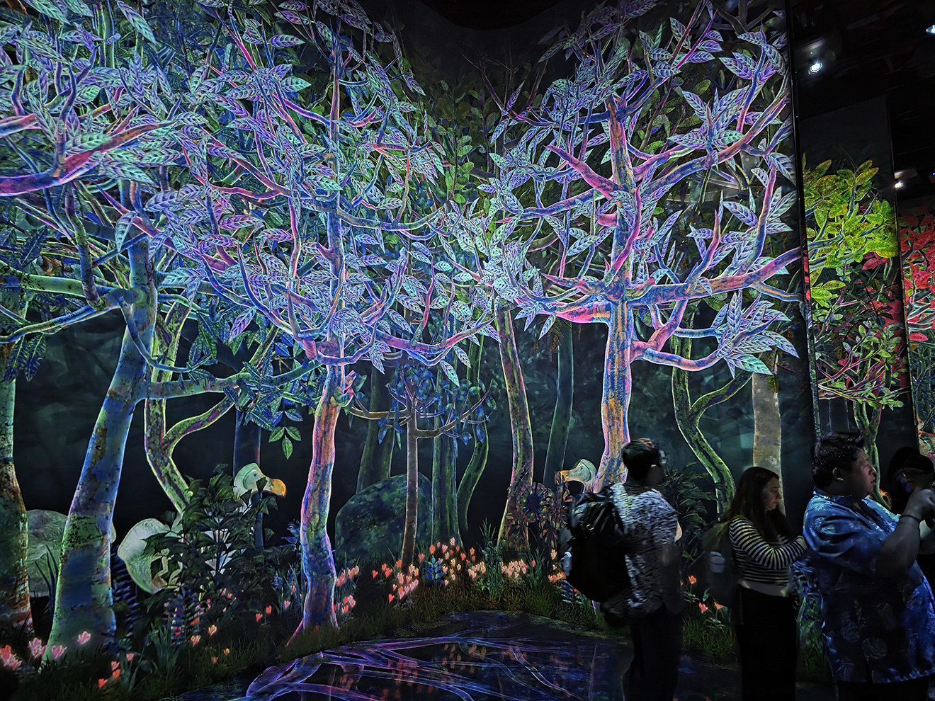 I decided to start out with teamLab Borderless. I deliberately hadn't done any research ahead of time so I went in without too much in the way of expectations. Borderless is a dark almost mazelike place without any sort of set route (in fact, finding all the different exhibits is part of the experience). Much of it uses a mixture of screens and projectors to display the art on the walls. Most of the rooms aren't dedicated to specific displays, but rather different layouts on which to display the ever changing art. Basically, there's a number of pieces of art displayed in Borderless, but the majority are constantly moving computer animations generated in real time. And by moving, I don't just mean the animations. The art moves from room to room around the gallery. Once, for example, I entered a room filled with ocean waves only for them to wash away down the hall as a swarm of butterflies came to replace them. Some of them can also change pretty significantly based on the room itself due to the wildly different layouts. The different pieces of artwork can also interact with each other. For another example, here's ones of the largest rooms in Borderless which, when I first came across it, was filled with a waterfall. Later on, it was taken over by an iris field which was interrupted by a group of crows I'd seen flying around many other parts of the museum. The crows stayed for a while as the field was replaced by the flowers I'd first seen near the entrance, along with a rain of kanji characters. Oh, and did I mention that visitors can interact with much of the art as well? For example, if a person (or one of those aforementioned crows) touched one of the kanji it would turn into whatever that particular character represented. I'll note that I'm only showing a tiny fraction of the rooms, artwork, and interactions as exploring and seeing what you can find, and how it changes during your time in the museum, is really fun and interesting. Even the tea room features unique interactive artwork, which changes as you eat and drink (the tea and ice cream are very good too). That said, Borderless does have a few more set physical exhibits (if you can find them) which make use of mirrors and changing lights to seemingly stretch into infinity. I spent a bit over two hours exploring, in which time I think I found every room (though the low light, confusing layout, and lack of maps means I might have missed something), but with how much things change, I could have stayed longer. It was a really unique experience and I highly recommend it. My next stop was teamLab Planets but that was in a different part of Tokyo and I needed to get something to eat so I gave myself quite a while to get there. Planets was a lot busier (not sure if that's normal or just since I went there later in the day) and, even with my timed entry ticket, I had to wait in line for a little while to get in (not a big deal except that it was raining at the time). Unlike Borderless, it had a clear layout and all the art was confined to its own areas. It's divided into three zones. Water required you to take off your shows (lockers were provided) then follow a set route from exhibit to exhibit, separated by long, dark halls. Despite the name, only a couple of them involved water (they're the reason you needed to take off your shoes). There was also some overlap with Borderless and some totally unique rooms. It was all pretty neat, but I did kind of wish they had more water stuff given the theme and all. Once I made it to the end of Water and reclaimed my shoes, it was off to Forest. It features a small garden and two "forests." Capture Forest lets you roam around a number of virtual environments and use an app on your phone to capture the various extinct animals that roam around the area (as a note, even with a good cell signal, it doesn't seem to work right unless you're connected to the local wi-fi). I caught over 22 animals but the app lists 87 different ones you can find and, if you want to fill out all of their information, you need to catch three copies of each. If you really want to catch 'em all, I would expect it to take at least two or three hours. Didn't hold my attention for that long (and I wanted see the rest of the exhibits anyway), but I could seem some people (especially kids) getting hooked. The Athletic Forest, meanwhile, was all about interactive exhibits, most of which involved the art changing and you did something physical such as balancing, climbing, or sliding. Honestly, felt a bit more like a fancy play area than art, but it was fun. The Garden area was the smallest and featured just one exhibit, a room full of live hanging flowers that rise and lower through the air based on their proximity to visitors. There was also an out door area, but there wasn't much there other than a restaurant and, due to the heavy rain, I didn't really feel like hanging around. Over all, Planets was cool and certainly unique; really good for kids as well. Though, if you don't mind the lack of "play" spaces, I think Borderless is the better of the two. Once I finished, it was getting close to dinner time so I swung by Odaiba, which was nearby, to do a little shopping and get some sushi, wrapping up my final day in Japan. |
