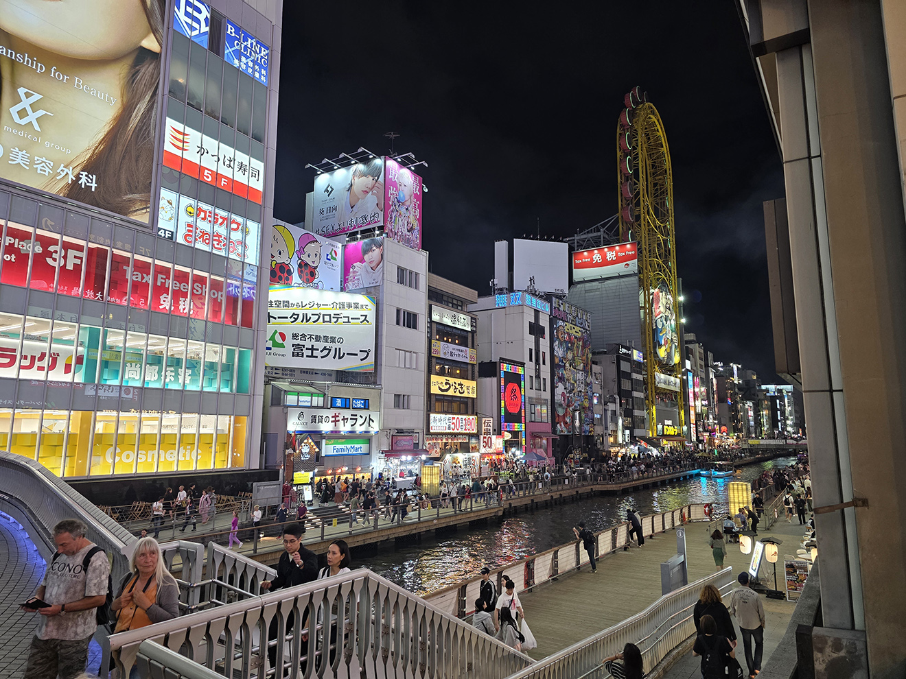Fortunately, we were able to get everyone checked out and on to the shinkansen without any major issues and we got some nice views of Mt Fuji during the ride. We did have a bit of trouble making our way to the hotel after reaching Osaka due to a very inconvenient street layout, but we did get there eventually and I was able to find a much better way to go in the future. After everyone was settled in, I lead a group over to Den Den Town for some shopping. I didn't want to stay there too late, so I only hit a few favorite stores but I still managed to find some rare CDs. While Den Den Town isn't huge, it seems like I find something cool every time I come. After that, it was off to Dotonburi for dinner (sushi, finally). Then, since I had spent so much time sitting, I decided to walk all the way back to the hotel. It's no Sumida River walk, but Osaka at night is pretty. |