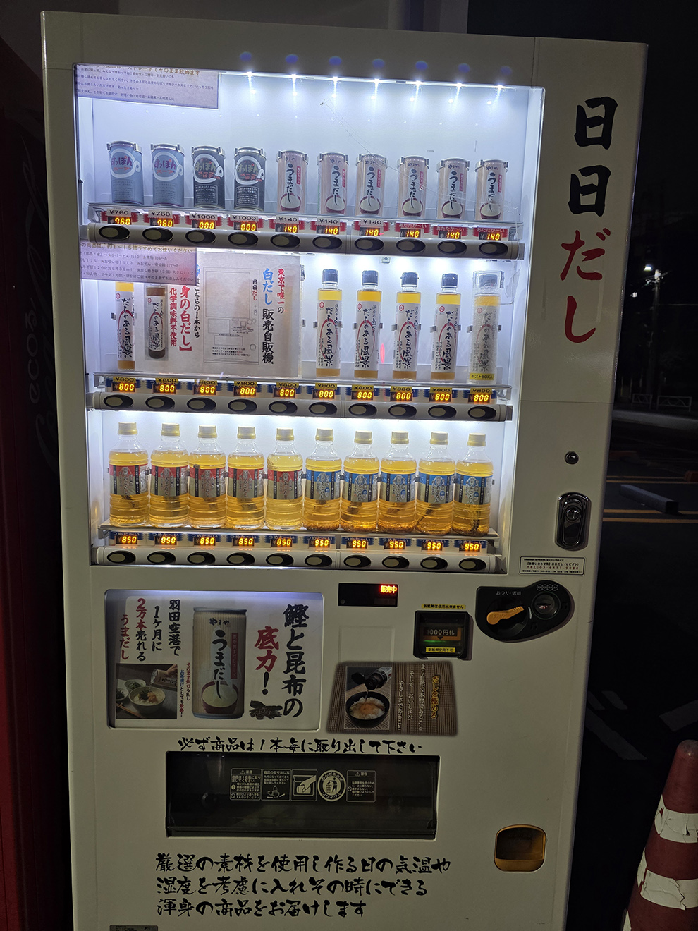 The Japan Game Studio Tour seems to have successfully become an annual event. While there weren't any massive changes to the itinerary this time around, there was still quite a lot of planning involved over the past few months. As before, I'll be glossing over things I've covered the previous couple of years and I can't say too much about the game studio visits themselves. This year we were originally planning a family trip in Japan (and possibly China) after the tour ended. Unfortunately, it ended up falling through for a few reasons. Next year, however, is looking pretty certain. But anyway, like last year I'll be heading home the day after the tour ends. It's a little disappointing, since I had been looking forward to both the family trip and also to having a few extra free days between the tour and my family's arrival, but it is what it is and we've got some fun stuff planned back home. I got another direct flight this year, though this time I flew United. It was fine, but I think the ANA flight I was on last year had better food and entertainment. Unfortunately, while the flight went smoothly enough, immigration and customs were packed and it took me a couple of hours to get out of the airport and on the train to Asakusa. Once there, I quickly checked into my hotel and then hurried off to the Tokyo Sky Tree. Well, more specifically, the Kirby Cafe in the Sky Tree mall. I've been wanting to go there for years, but had never been able to. It's so popular that reservations are pretty much always required and they also tend to get booked within minutes of going live so getting one requires good timing and a bit of luck. However, I recently noticed that, due to last minute cancellations, they occasionally get slots opening up within a few hours to a couple of days ahead of time so my plan for this year was to keep an eye on the availability page and, if I saw something suitable, grab it. That plan worked better than I hoped. The cafe is very clearly Kirby themed, but both the décor and music are sort of a classier, slightly subdued take on it. The food, however, really brings the theme front and center. It's not just for looks, it tastes pretty good as well, though naturally the visuals are the main appeal. Well, that and the special souvenirs you get with some of the menu items. After you finish eating, there's also an exclusive store which, while a lot smaller than the main Kirby Cafe store in the Sky Tree mall (which you can visit without eating at the cafe), has some unique items you can't get elsewhere. By the time I finished it was getting pretty late so, after pausing to watch one of the Sky Tree's many stair light shows, I started walking back to Asakusa. I could have saved myself 10 or 15 minutes and taken the subway, but then I would have missed out on the views and on spotting this dashi (a Japanese soup stock) vending machine. |