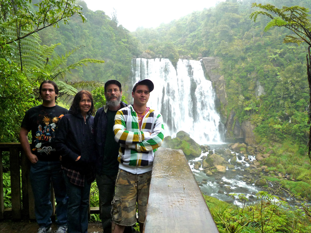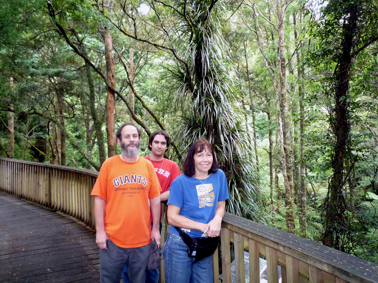This was the day I was really looking forward to. Our main destination was the Waitomo Caves to take a black water tubing tour, but more on that later. On the way to the caves, we stopped at the Kiwi House, a bird park that has, among other things, kiwi birds. The kiwi themselves were pretty cool. They're a bit over a foot tall and very different from other birds I've seen. Unfortunately, we weren't allowed to photograph the kiwi but I did get pictures of a kiwi skeleton and my brother next to a big kiwi statue. The Kiwi House also had lots of other birds, like these clam eater birds, and a few other creatures, such as this weird salamander thing. The cave tour itself was really awesome. My dad didn't go, but my mom, brother, and I did. We took the Black Labyrinth tour. Unfortunately, since we spent most of it in the water, I wasn't able to bring my camera. But here's the basics. Our group (twelve people plus two guides) started off getting wet suits and caving helmets (complete with head lamps) then drove to a nearby river to get our tubes and spend a few minutes practicing how to jump backwards into the water (landing on your tube in the process) and paddle around. Then it was off to the cave itself. To sum it up, we basically followed a river through part of the Waitomo cave system. Sometimes we walked through the water, sometimes we floated on it. We also had to clamber over some rocks and make a few jumps down to the lower levels (landing in the water on our tubes). Our guides were great and pretty funny, and climbing and floating around through the caves was awesome (and cold). But that's not all, there were also the glow worms. Actually a type of maggot, glow worms emit a bioluminescence in order to attract and trap insects that wander into the cave. With our head lamps turned off, the ceiling of the cave was almost like looking up at a starry sky. The entire experience was really cool and I highly recommend it (for all of you guys who just happen to come to the North Island of New Zealand). After we got out of the cave, we met my dad who wanted to take us to some spots he'd visited while we were floating around in the dark. First was a short walk through very jungle like terrain to the Manapohue Natural Bridge. The "bridge" is a stone arch of sorts that you can walk under. The bridge (and the surrounding forest) are both great and very pretty. Next, another quick hike. This time to the Marokopa Falls. Easily the best waterfall we've seen so far this trip. He's a shot of my whole family at the falls. Our hotel is in a small town nearby that proclaims itself to be the "shearing capital of the world". Ok... It's a pretty place, though there isn't much here. Surprisingly, our "hotel room" turned out to be an entire house. And a pretty fancy (albeit old) one at that. There's a lot of nice flowers nearby so here's one flower picture I'm particularly pleased with to finish things up for the day. |