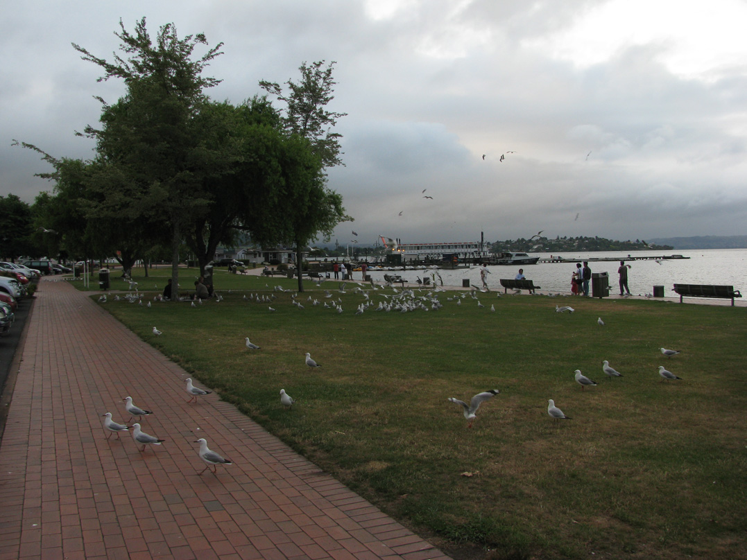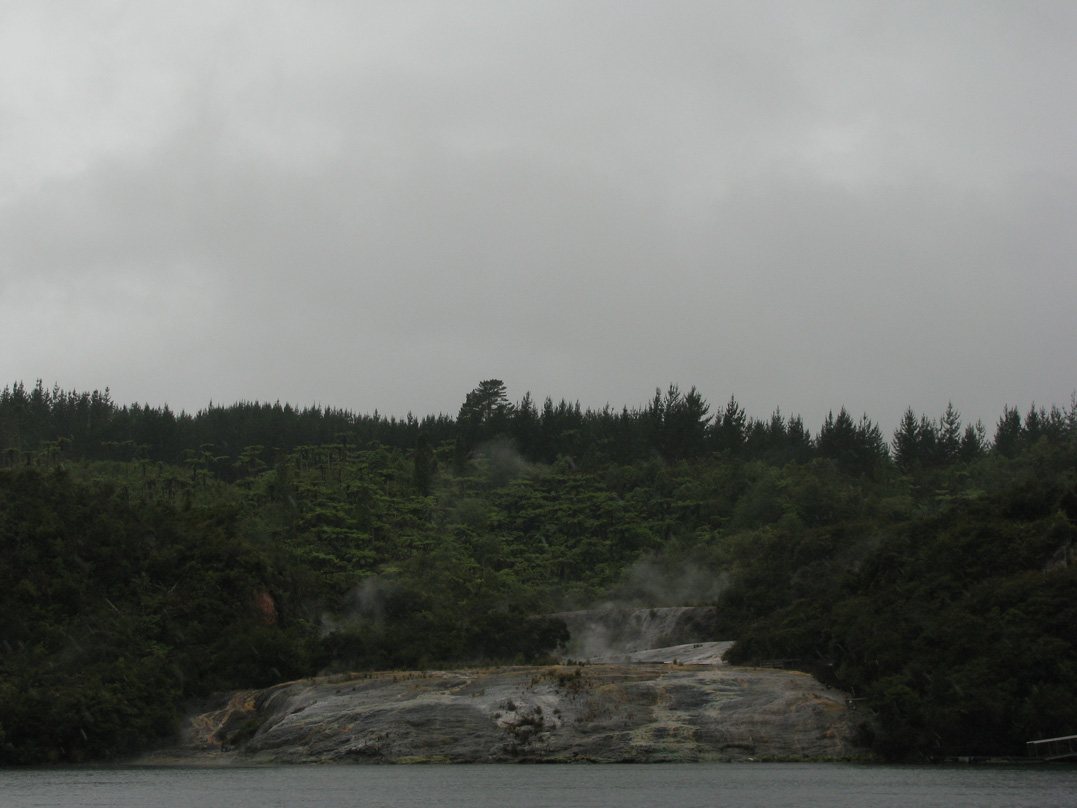 The weather took a turn for the worse, prompting a sudden change of plans. Instead of heading to a national park to go hiking (which wouldn't have been much fun in the rain), we pushed it to next week and headed to the town of Rotorua instead. Along the way, we stopped at The Lost Valley, an area with a lot of thermal activity (geysers, mud pots, and the like), kind of like what you'd see at Yellowstone National Park back in the US. There was even a cave with a thermal pool at the bottom. The valley itself was a short ferry ride across a river and had a nice circular walking path that hit all the main points. It rained most of the time we were there, but I had my umbrella so it wasn't too bad. Once we'd seen the whole valley, we continued on to Rotorua, a large town / small city on a lake. Like The Lost Valley, there's a lot of thermal activity in the area so it's got its share of geysers and hot springs. It's a nice town, though you can smell sulfur in the air in many areas. I'm not sure if that's something I'd get used to or really sick of... Anyway, we stopped at a shopping center to grab lunch and look around a bit and then dropped by our hotel to unpack and figure out how we wanted to spend the rest of the day, since the rain had screwed up our original plans. My brother really wanted to do the Zorb. You may have seen it on TV. Basically you get inside a giant inflatable ball and roll down a hill. They had the normal version and a wet version, where instead of being strapped in you're just in the ball with enough water to ensure that you're constantly slipping and sliding around. That's what my brother and I did. It was a lot of fun, though very expensive considering how short the ride was. After the Zorb, we went around the town a bit, saw some sheep, and checked out the restaurants. We ended up eating at a place called New Zealand Supreme, a Chinese restaurant of sorts specializing in local meats including venison and duck. It was all really good. Duck is a lot better than I expected and it was the best venison I've ever had (not that I've had a lot though). To finish up the day, we took a walk by the lake, which was home to tons of seagulls, black swans, and other birds. There were too many clouds to see much of a sunset, but it was still a pretty area. We'll be staying in Rotorua for another day, so I'll talk more about it next time. |