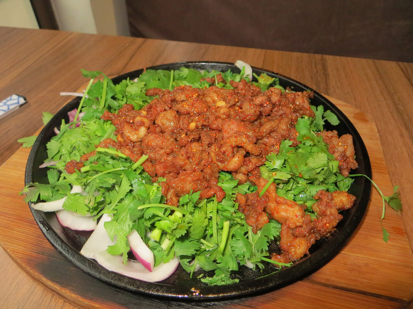 Moving on, I took the train a short distance to Shin-Okubo, which is home to the Korea Town area I mentioned in Saturday's post. I wanted to walk around and get a better feel for the place as well as grab some lunch. Being a Korean area, there are naturally lots of Korean restaurants. Some snack stands too. I tried what I suppose you could call the Korean equivalent of taiyaki or dorayaki. It's a pancake of sorts stuffed with something (the most common fillings I saw were cheese, honey, and red bean paste). I got a cheese and honey mix, which was pretty good. Other than food, there are also a lot of stores focused on Korean dramas and music and the various celebrities therein. Not really my thing, but I have some friends who are seriously into them. Back to the food, while I've never seen it at Korean restaurants in the US, fried chicken is actually a pretty popular Korean food. At least that's what my Korean friends tell me, and the restaurants in Korea Town seem to prove it. It's more like what you'd get at a chicken wing restaurant in the US than typical friend chicken (except it's all parts of the chicken, not just the wings), and every place seems to have their own collection of sauces. The ones I tried between Saturday night and today were a sweet teriyaki-ish sauce, a really spicy sauce, and a peanut sauce.