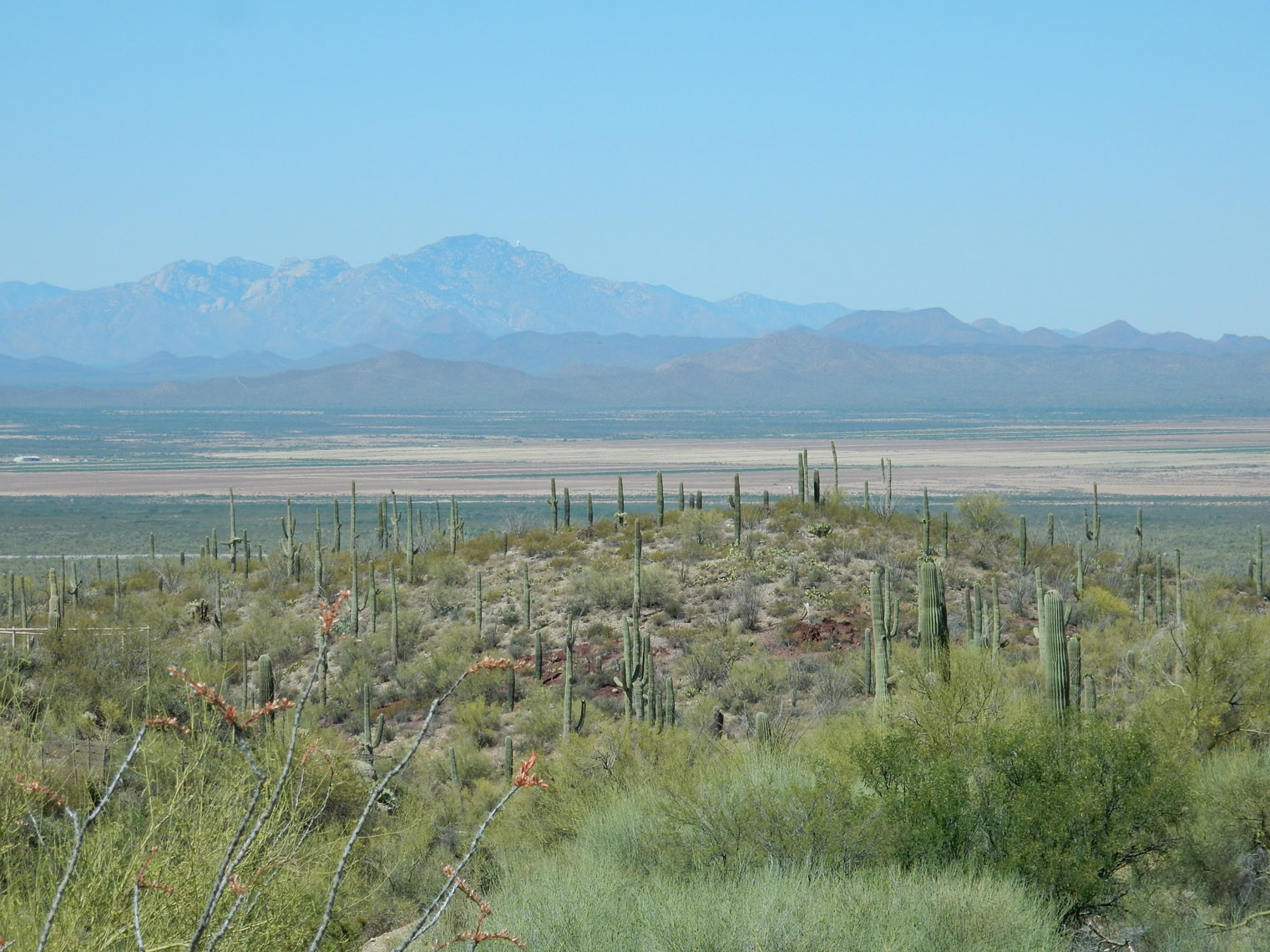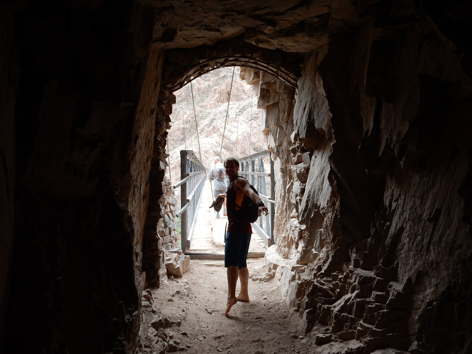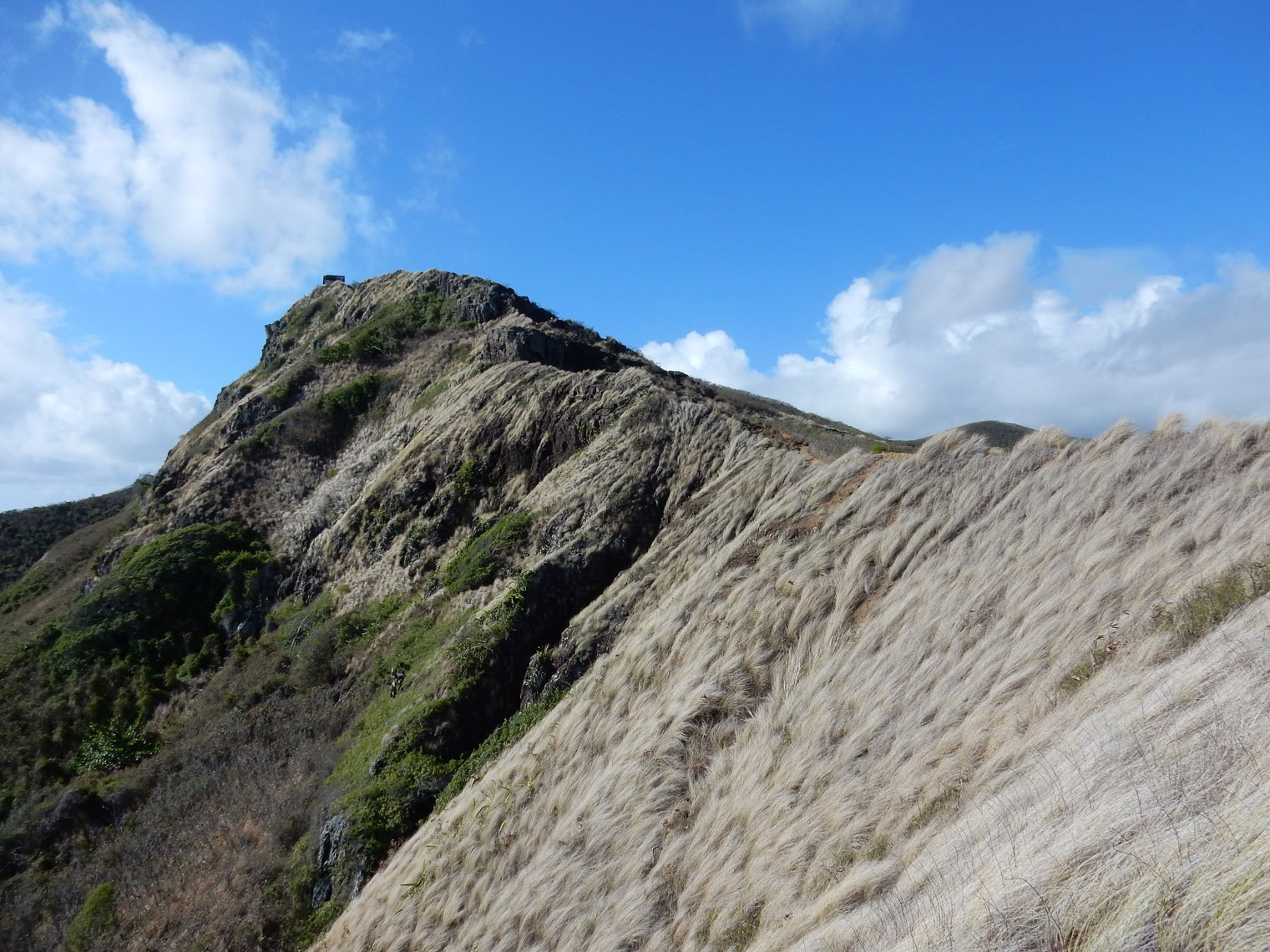 The top of the arch didn't mark the end of the climbing, since we still had to gain a lot of height to reach the ridge. From there though, it was fairly simple to follow the ridge for the rest of the ascent. Here I am about halfway along the ridge. If you hadn't noticed from the previous photos, you can probably tell from this one that it was really windy. The wind kept up for nearly the entire hike (start to finish). It did make the climbing slightly more difficult (and made a total mess of my hair), but it also kept things from getting too hot, which is nice since otherwise we would have been in the sun pretty much the entire time. According to the hike organizer, we got pretty lucky in that regard, since there's usually no wind and it can get very hot.