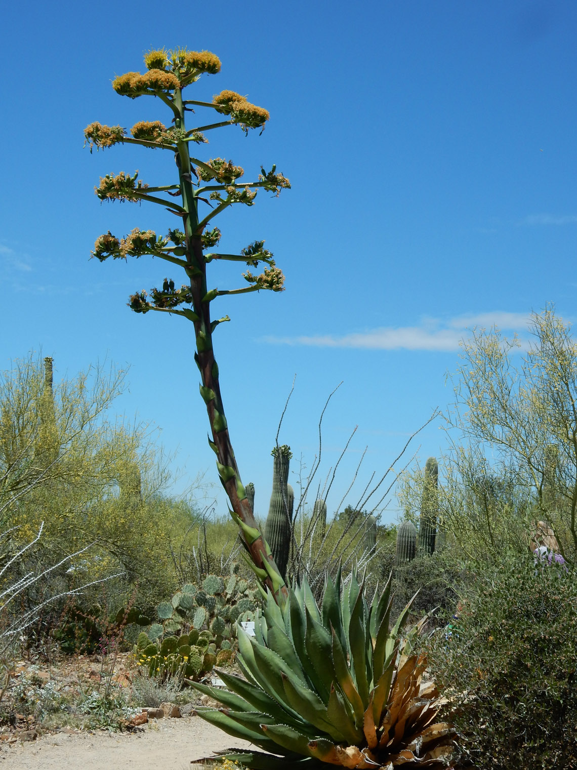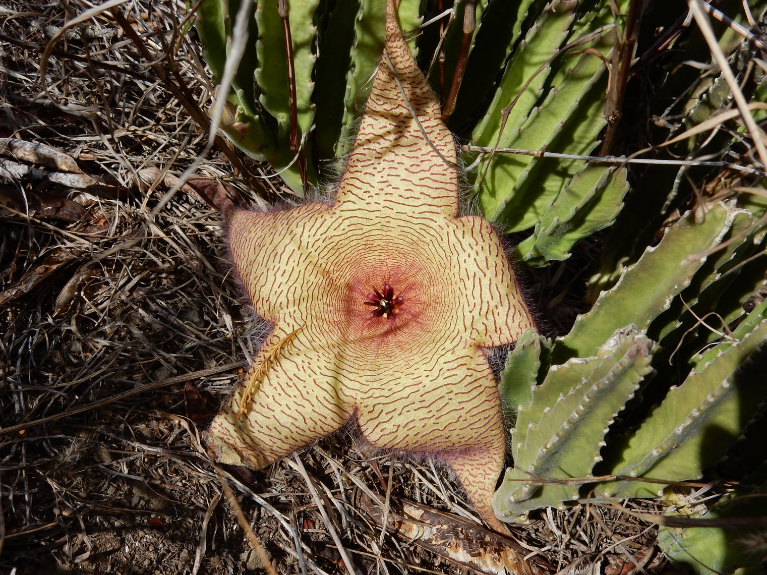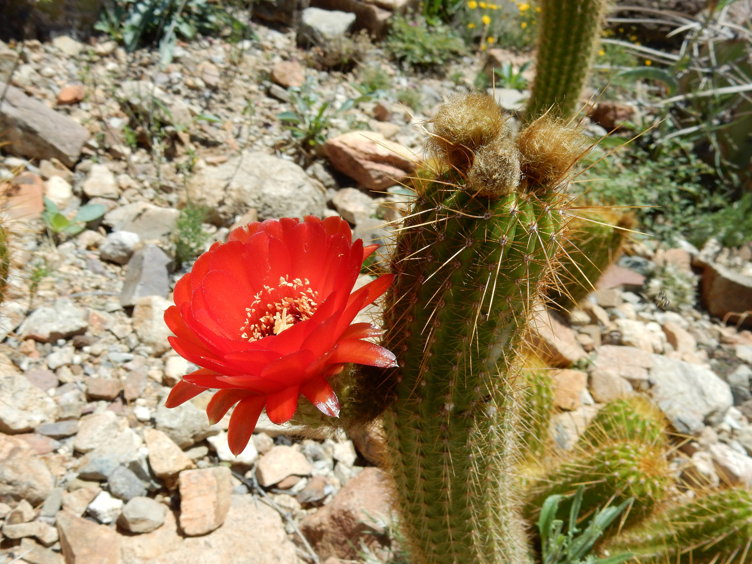 The top of the arch didn't mark the end of the climbing, since we still had to gain a lot of height to reach the ridge. From there though, it was fairly simple to follow the ridge for the rest of the ascent. Here I am about halfway along the ridge. If you hadn't noticed from the previous photos, you can probably tell from this one that it was really windy. The wind kept up for nearly the entire hike (start to finish). It did make the climbing slightly more difficult (and made a total mess of my hair), but it also kept things from getting too hot, which is nice since otherwise we would have been in the sun pretty much the entire time. According to the hike organizer, we got pretty lucky in that regard, since there's usually no wind and it can get very hot.