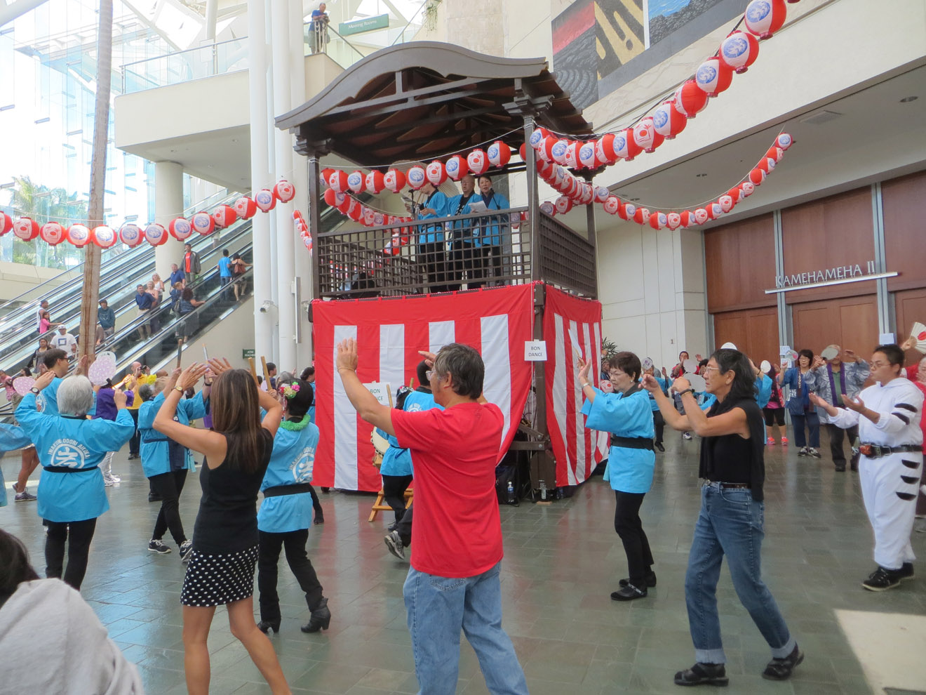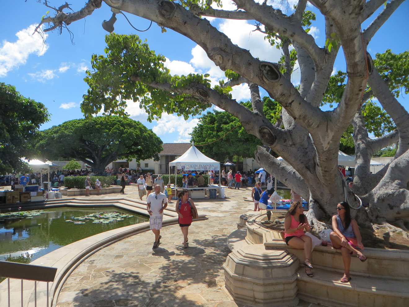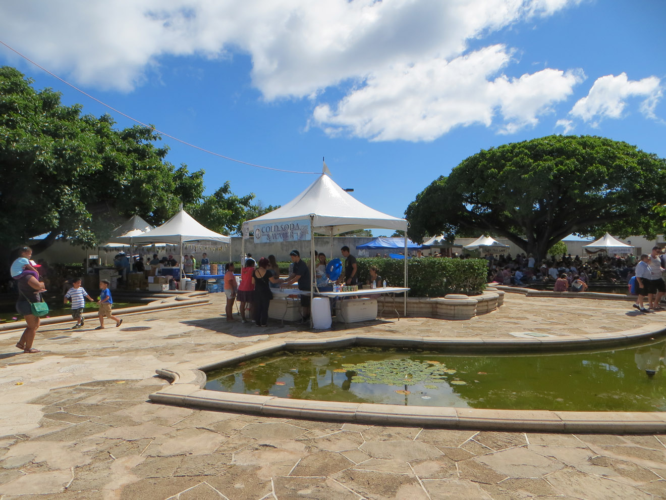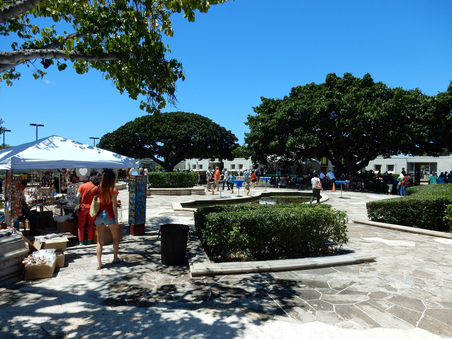 It actually took me a while to find the place. When it said the festival was in Ala Moana beach park, I forgot how large that park is. I also didn't realize that, rather than out in the park, the festival was inside a special events building they have there. Anyway, I had to walk all the way from one end of the park to the other, but I did find it. And I have to admit, having it set apart like that was a good idea, and the courtyard even sported a slightly Greek look, adding to the atmosphere.