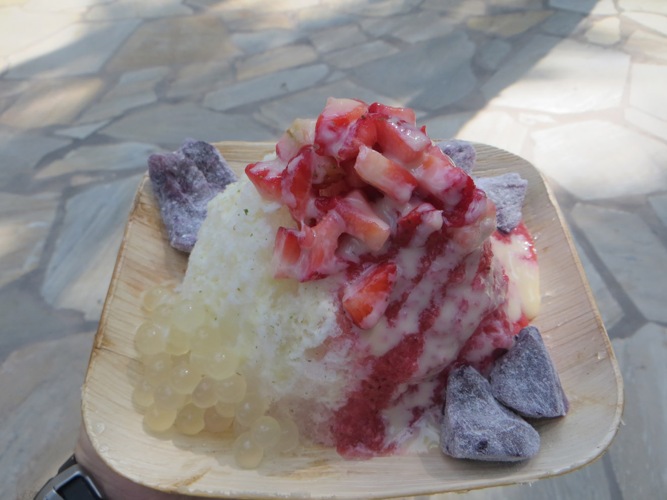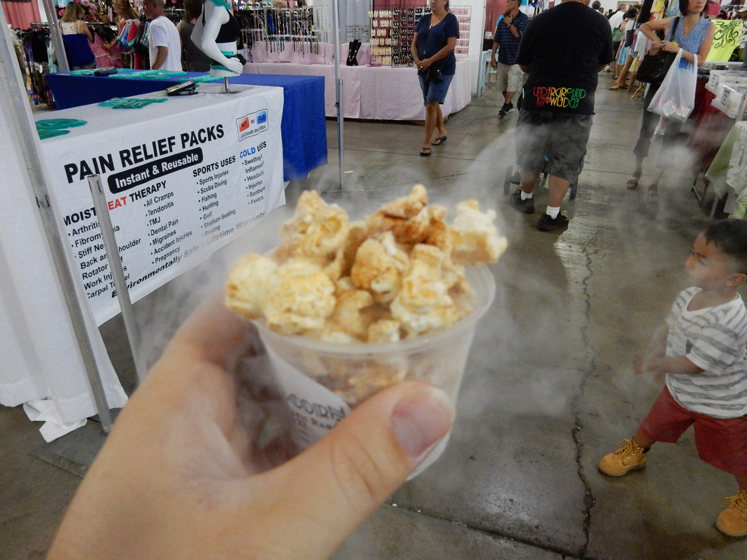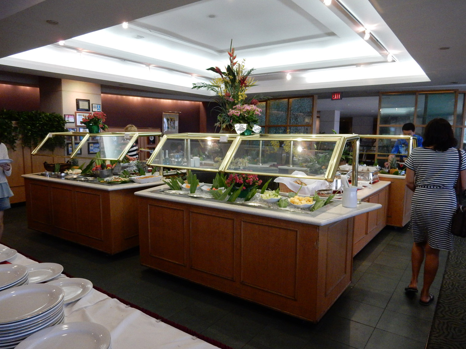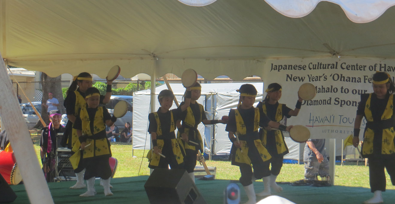 It actually took me a while to find the place. When it said the festival was in Ala Moana beach park, I forgot how large that park is. I also didn't realize that, rather than out in the park, the festival was inside a special events building they have there. Anyway, I had to walk all the way from one end of the park to the other, but I did find it. And I have to admit, having it set apart like that was a good idea, and the courtyard even sported a slightly Greek look, adding to the atmosphere.