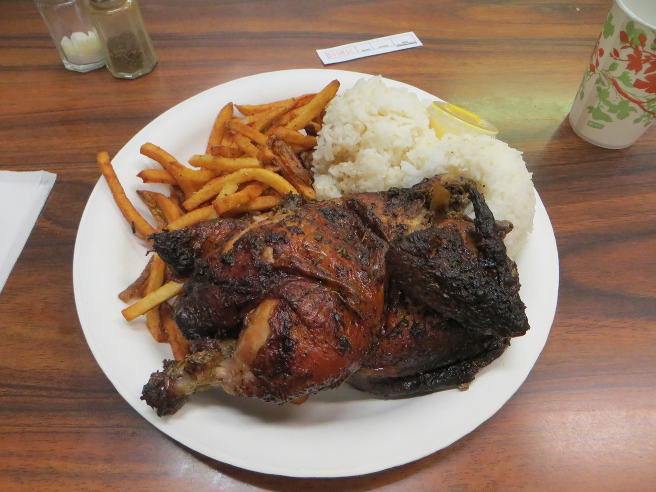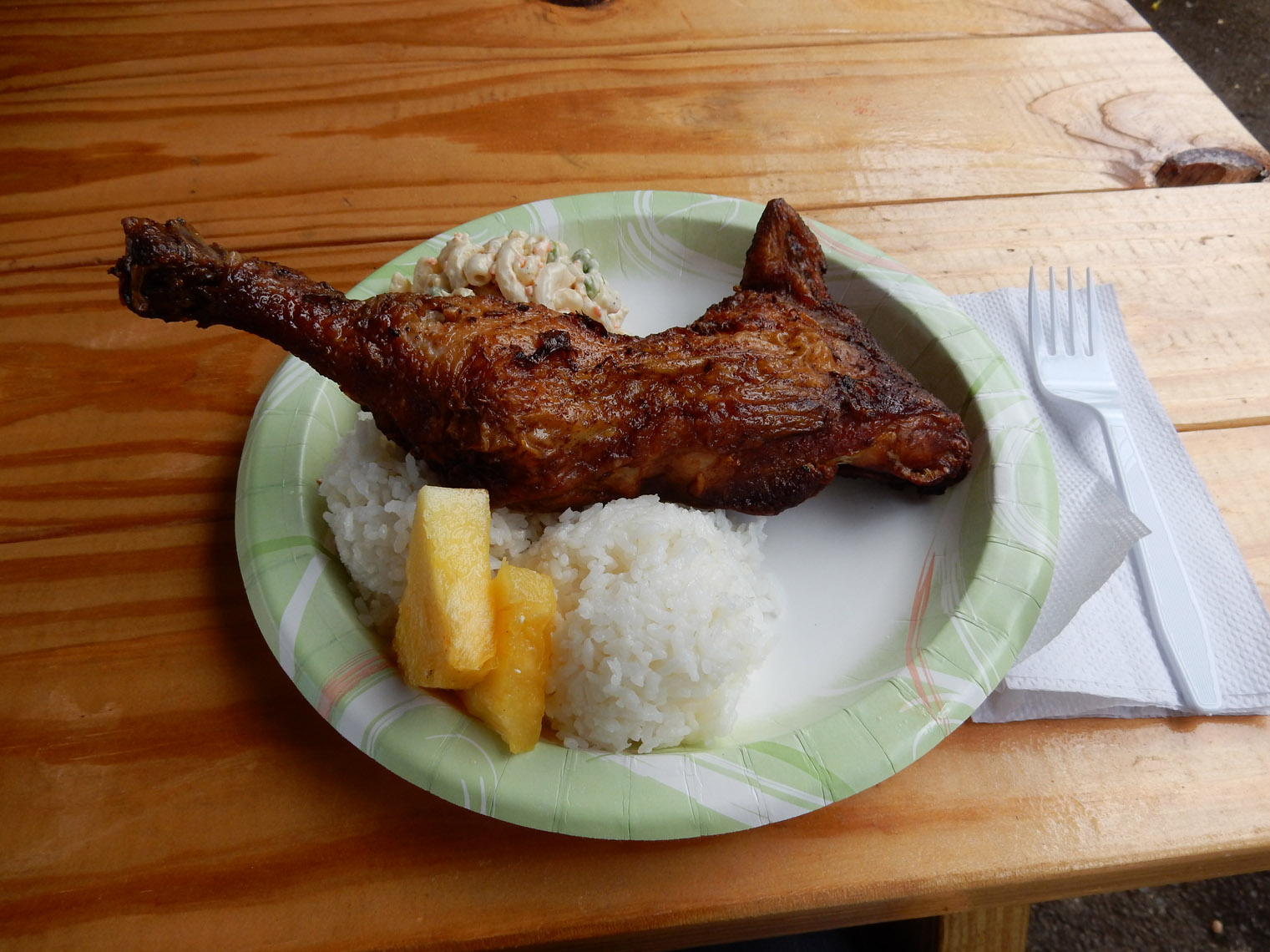 I've driven past Mike's a few times in the past, and could always smell the chicken roasting. Now, I finally got to try it. Mike's used to be a food truck but got popular enough to upgrade to a more permanent setup, though still with a very strong food truck vibe. They've got a good variety of plate lunches (all meat based, of course). A little on the expensive side for a food truck, but you do get a pretty big serving. I got the chicken plate, which is their signature dish. Got to say, they really know how to grill a good chicken. Crisp skin, tender meat, for rotisserie chicken, the texture was about as good as it can get. Nicely spiced too. I can't comment on their other meats, but you can't really ask for a better chicken. I'll be sure to go back next time I'm in the area.