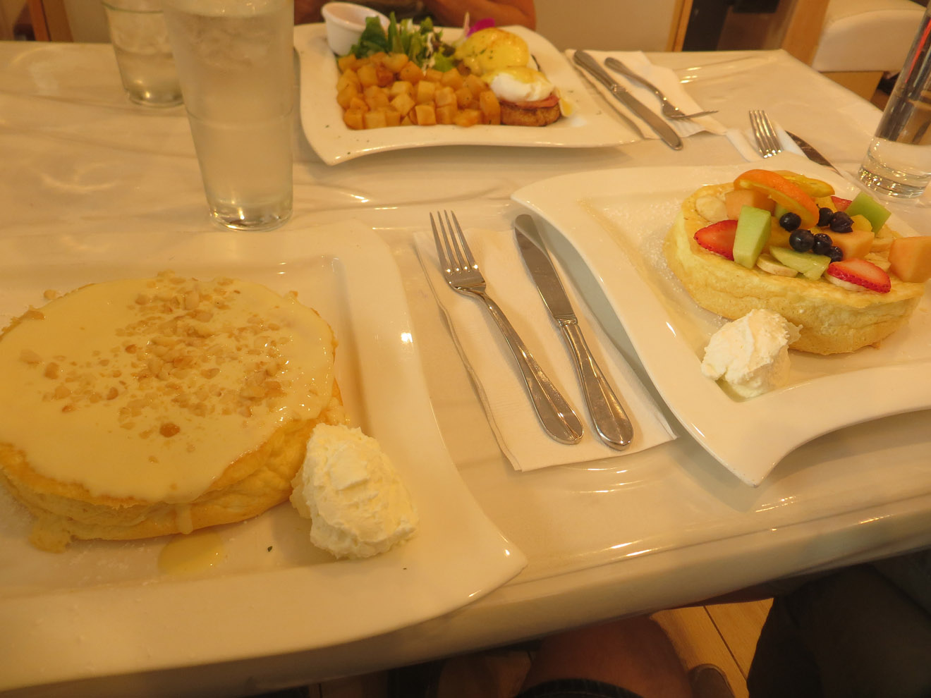 Just hearing the name, you'd assume YogurStory is a frozen yogurt place but yogurt actually doesn't figure much into the menu . Breakfast is a number of fairly standard items (pancakes, omelettes, loco mocos, etc.), but mostly with some kind of twist such as the very purple ube pancakes. The sauce is a mix of coconut and Okinawan purple sweet potatoes and the pancakes themselves are purple as well (also because of the sweet potatoes). The pancakes aren't especially sweet, but the sauce makes up for it. They taste great and don't give you the sugar overload that some pancakes do. They definitely live up to their reputation.