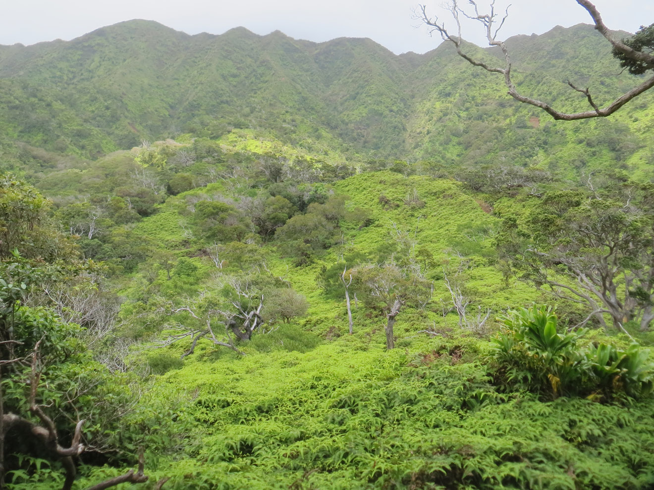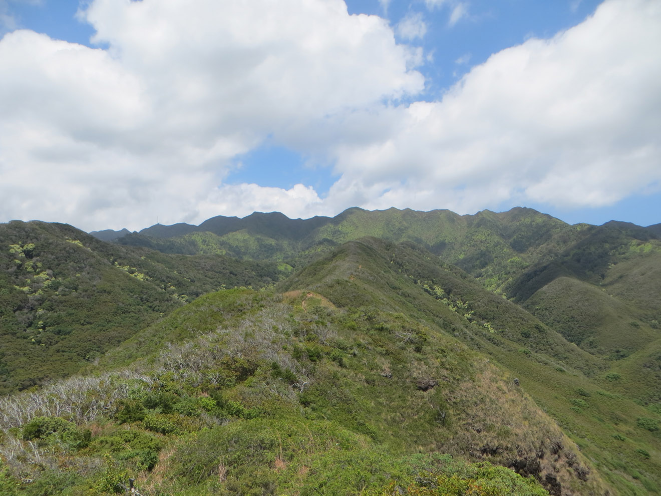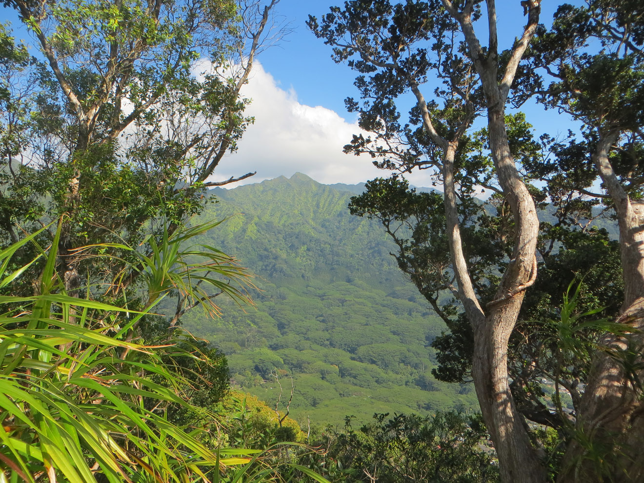 The first hike was Pillboxes, which is a fairly well known one. It starts in a Lanikai housing development and, after a relatively short but kinda steep climb, follows a ridge to a couple of pillboxes (old military bunkers). While the pillboxes themselves aren't much to look at, the views are great. There were some interesting plants up there too. The hike itself isn't very long (you can make it to the pillboxes in under 30 minutes if you keep a decent pace), though you can keep following the ridge for quite a while after that (I heard it eventually loops back down into a different part of the town). Not too strenuous either, though the very beginning is a bit steep. Definitely a nice shorter hike.