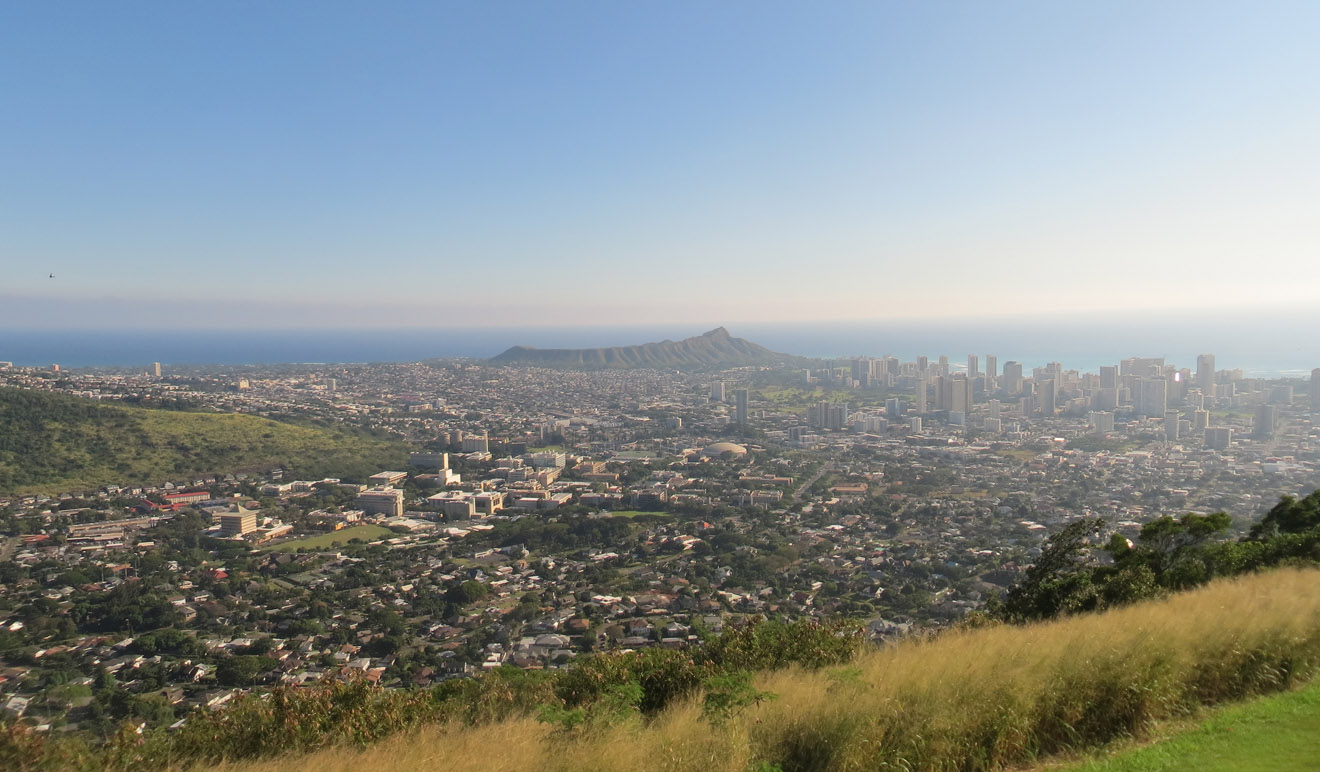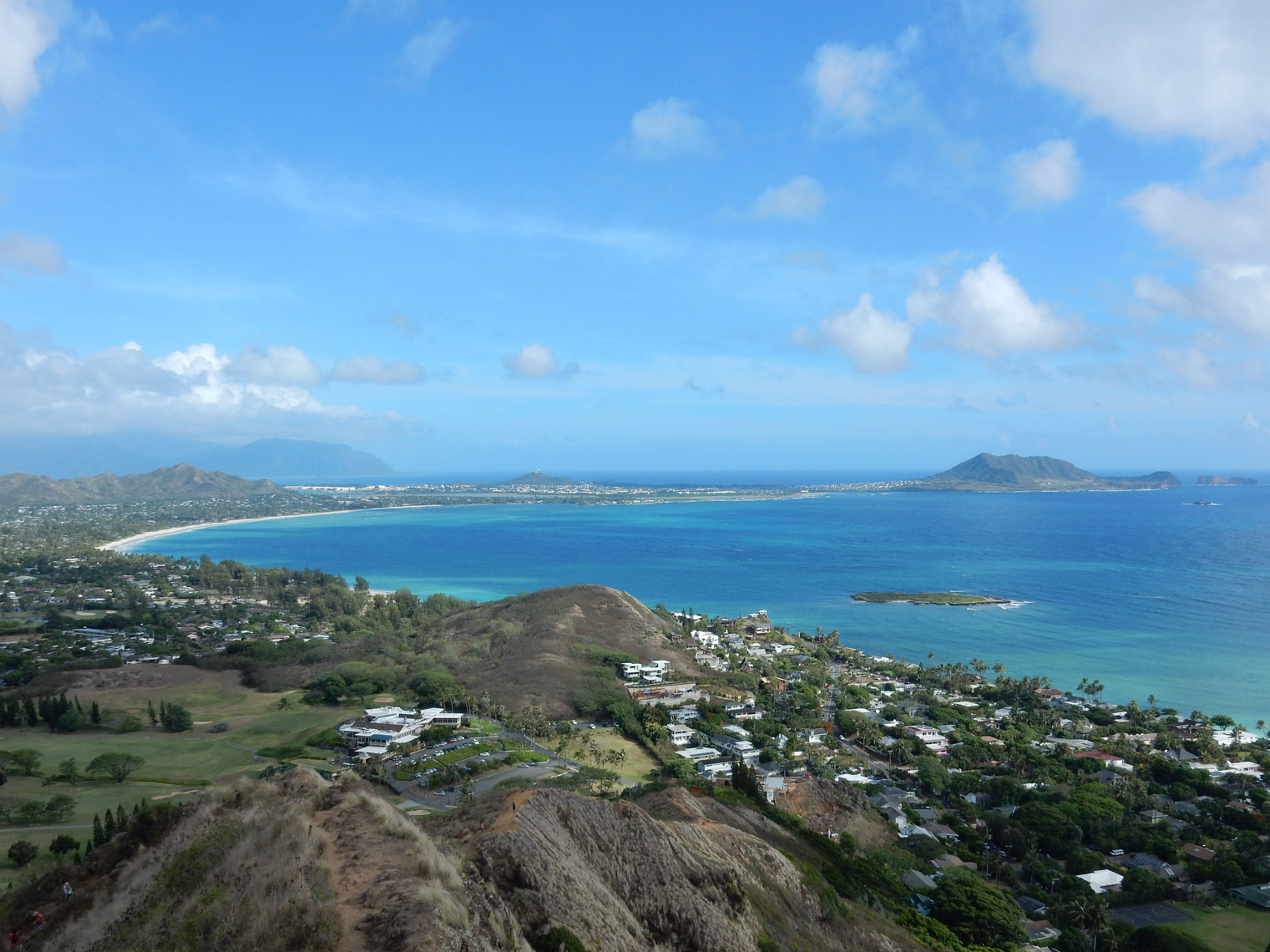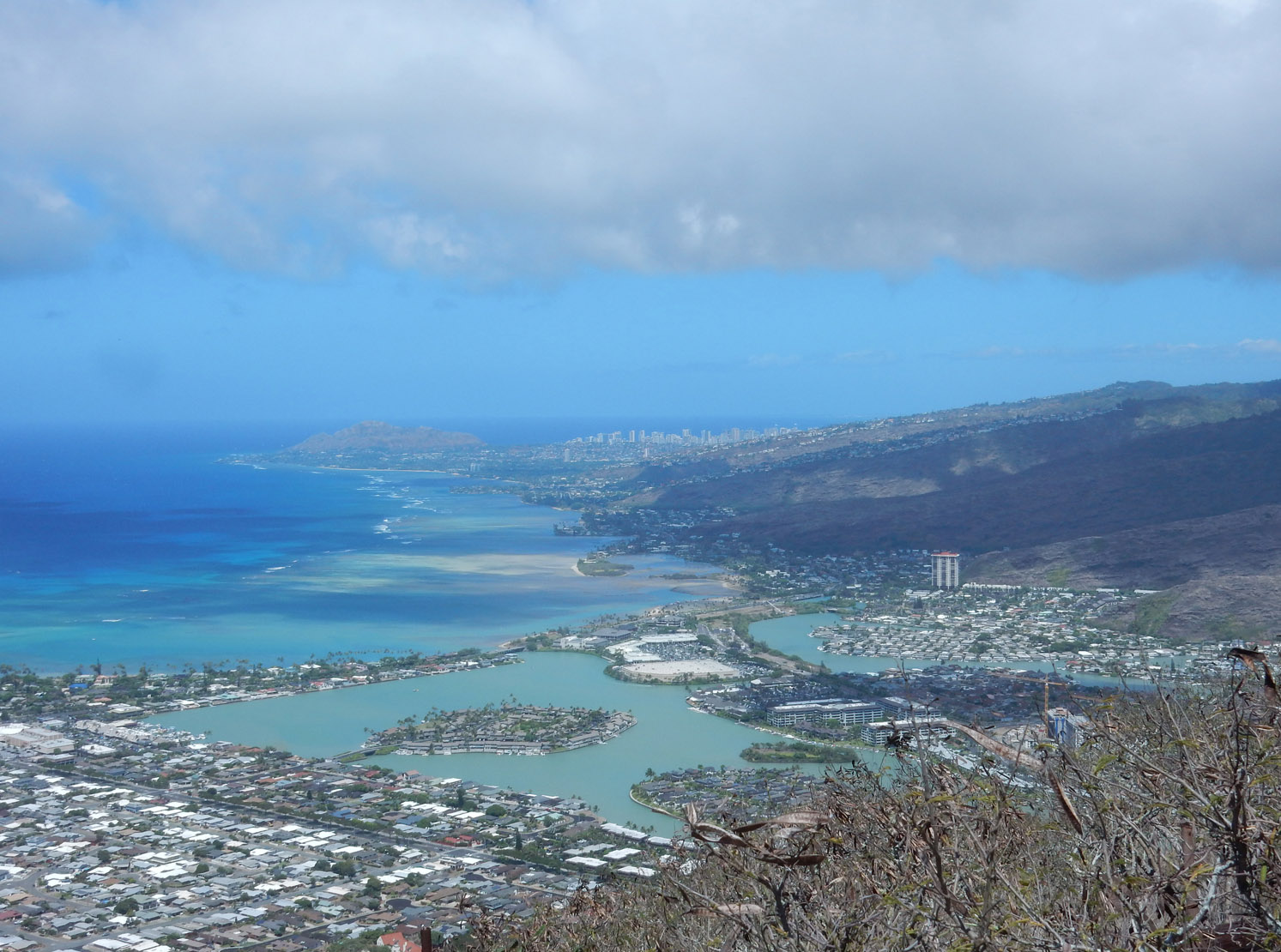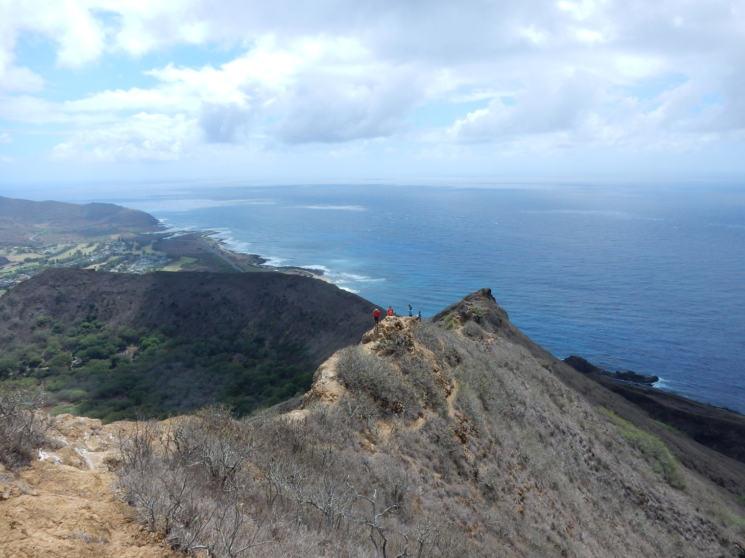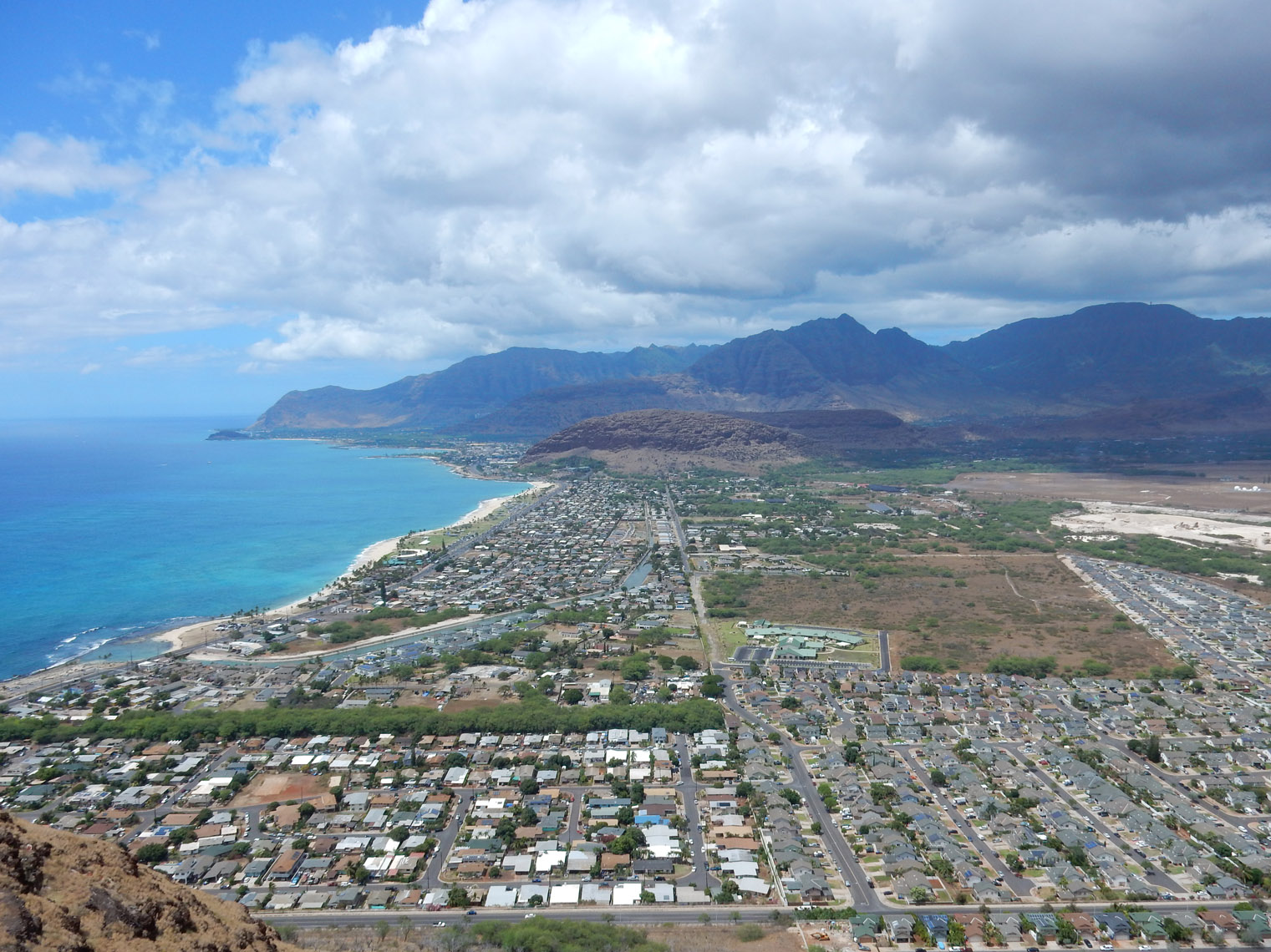 In the end, we reached the same place the regular Koko Head hike ends. Here's a panorama from the top and here's a close up of Hawaii Kai and Honolulu. From there it was a quick and simple walk down the regular railway trail back to the parking lot. Between the coastline and the arch climb, I'd say this is one of my favorite hikes on the island (at least so far). But, while it's not especially dangerous, you do need to be careful climbing over the arch and pay attention to the tides if you walk along the coast.