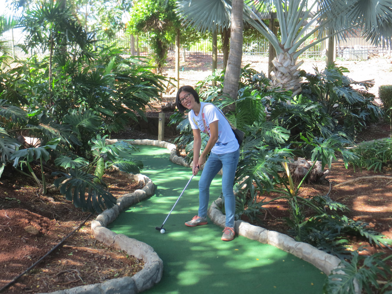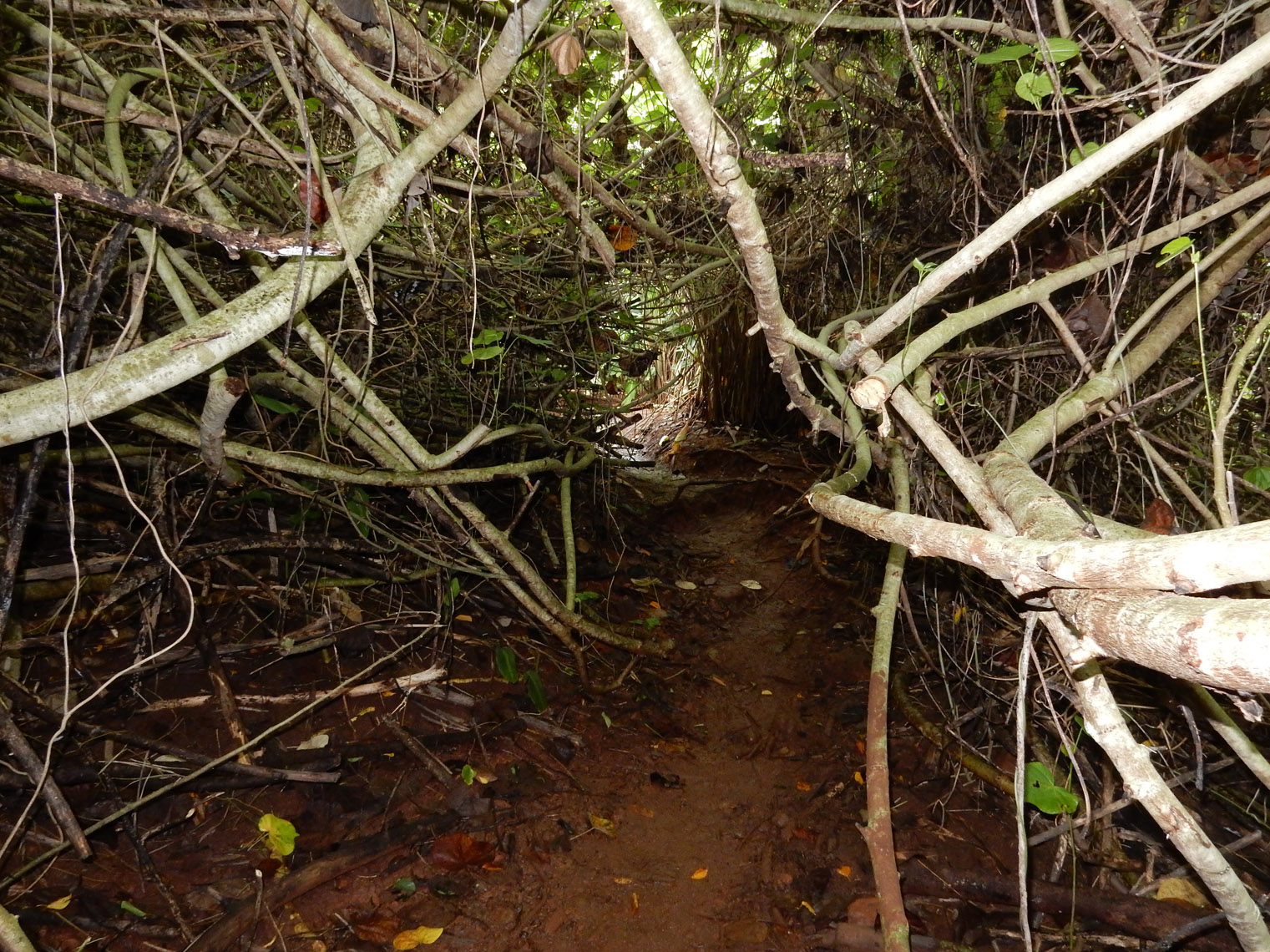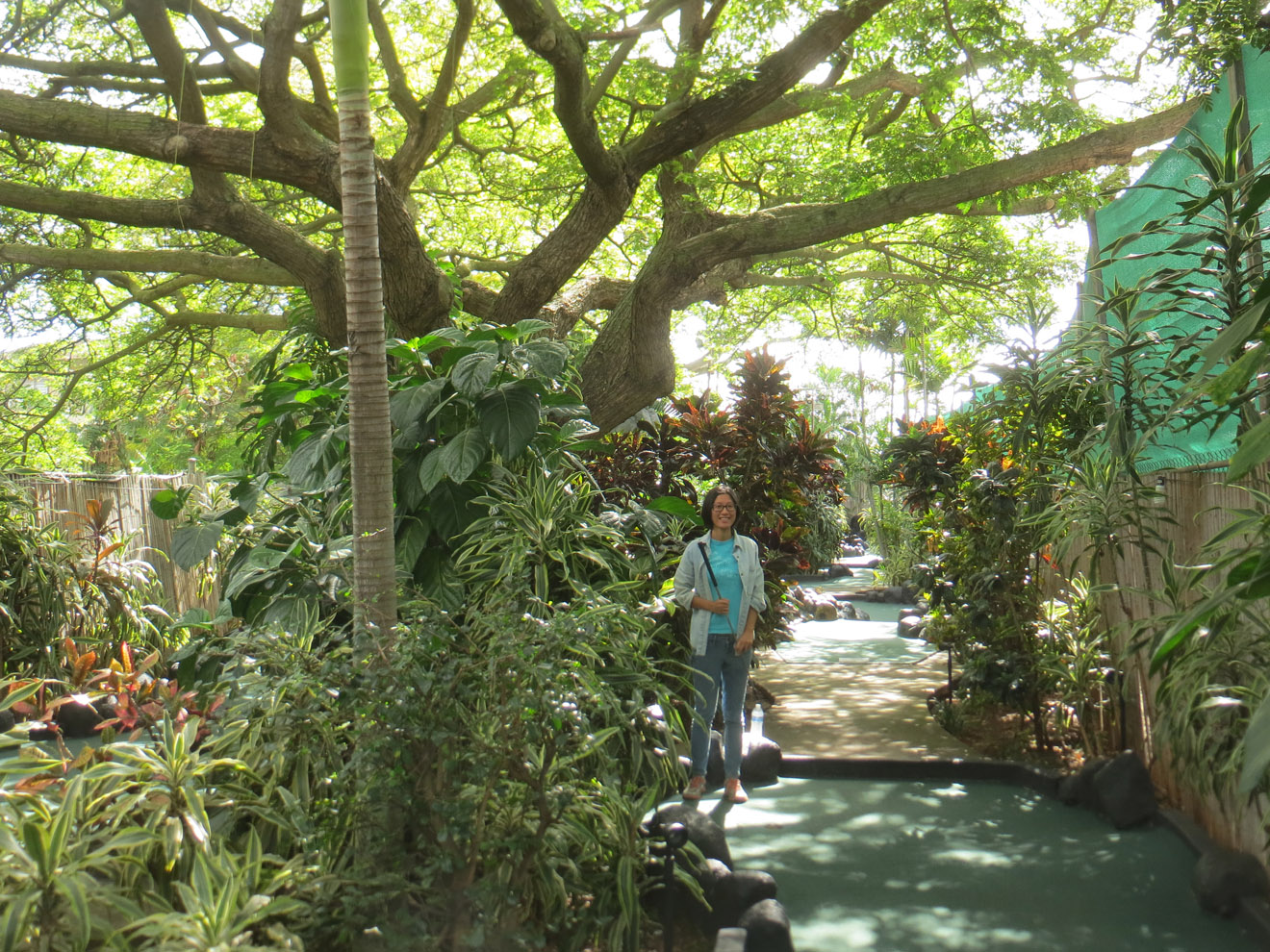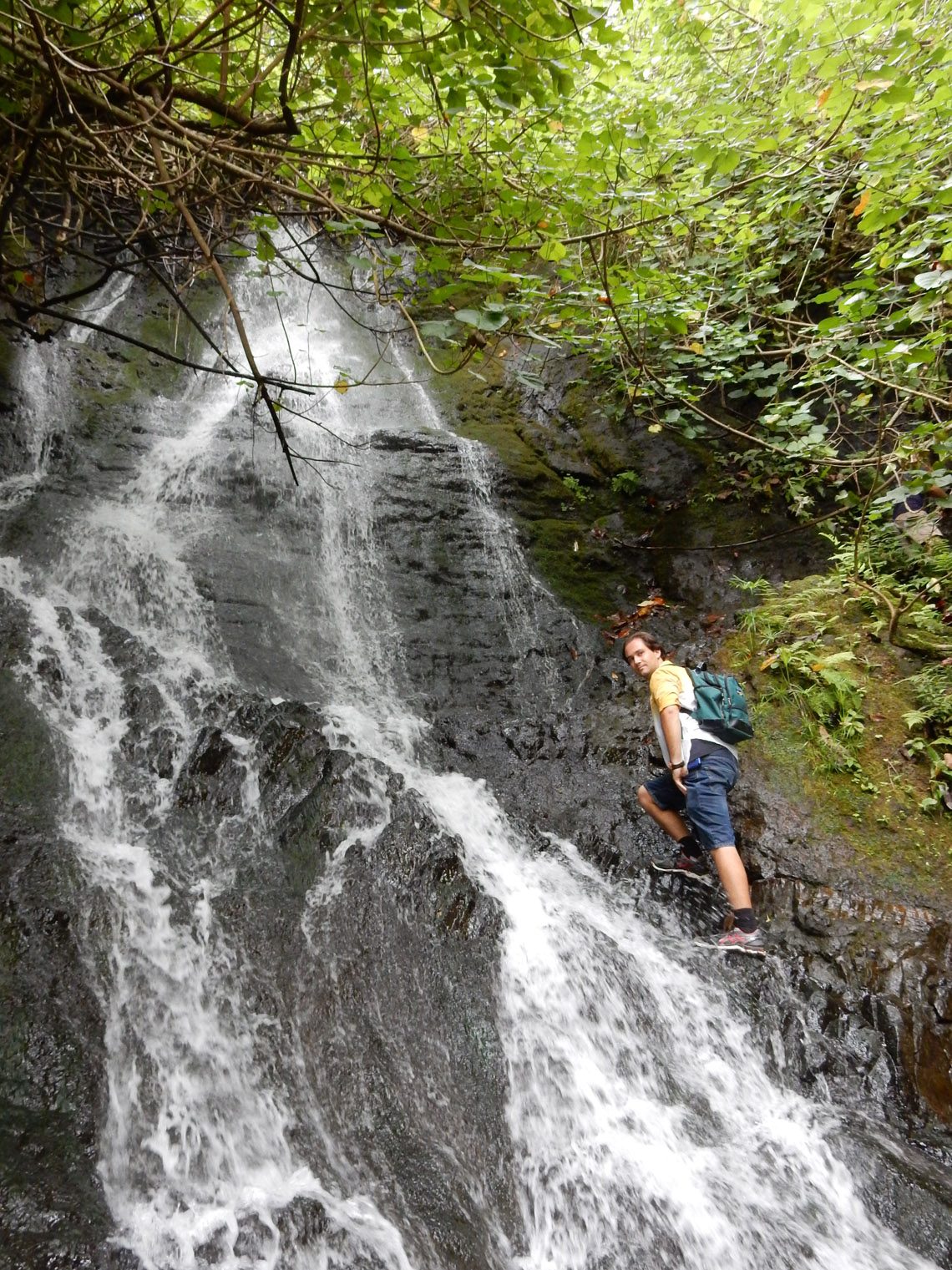 After that going to the pillboxes and back, we drove to the Ko'olau Golf Club, which is the start of the Likeke Falls hike. One end of it, anyway (someone said the other end of the trail connects to the Pali highway somewhere). Hiking from the Paili could have been kind of long. From the golf club though, it was a really short (if a little muddy) 10 or 15 minutes to the falls. The only tricky part was spotting the turn off for the falls (it's by a big tree that lots of people have carved on). Unlike the Pillboxes, this trail was in a thick forest. Really thick at spots (like where I took that photo). The falls themselves are nice. Not amazing, but nice. And one advantage of hiking with others is that there's always someone to take a picture of you. As a note, considering how short the hike is, it's hard to say if it would be worth driving out there just for that. But it makes a nice combo with other hikes or activities.