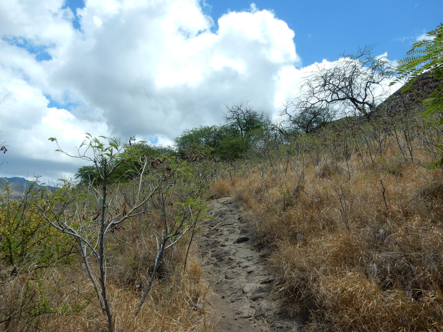 Anyway, Koko Head is a mountain on the east end of the island. The main trail is rather popular and known for being short but very strenuous (it's literally a straight climb up, following a old and steep railway track like a staircase). I did it a while back (see the entry for December 19th). However, there's an alternate (but not very well known) route that goes up the back side as well.