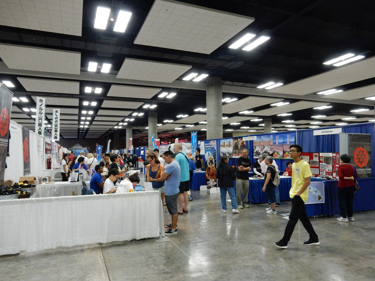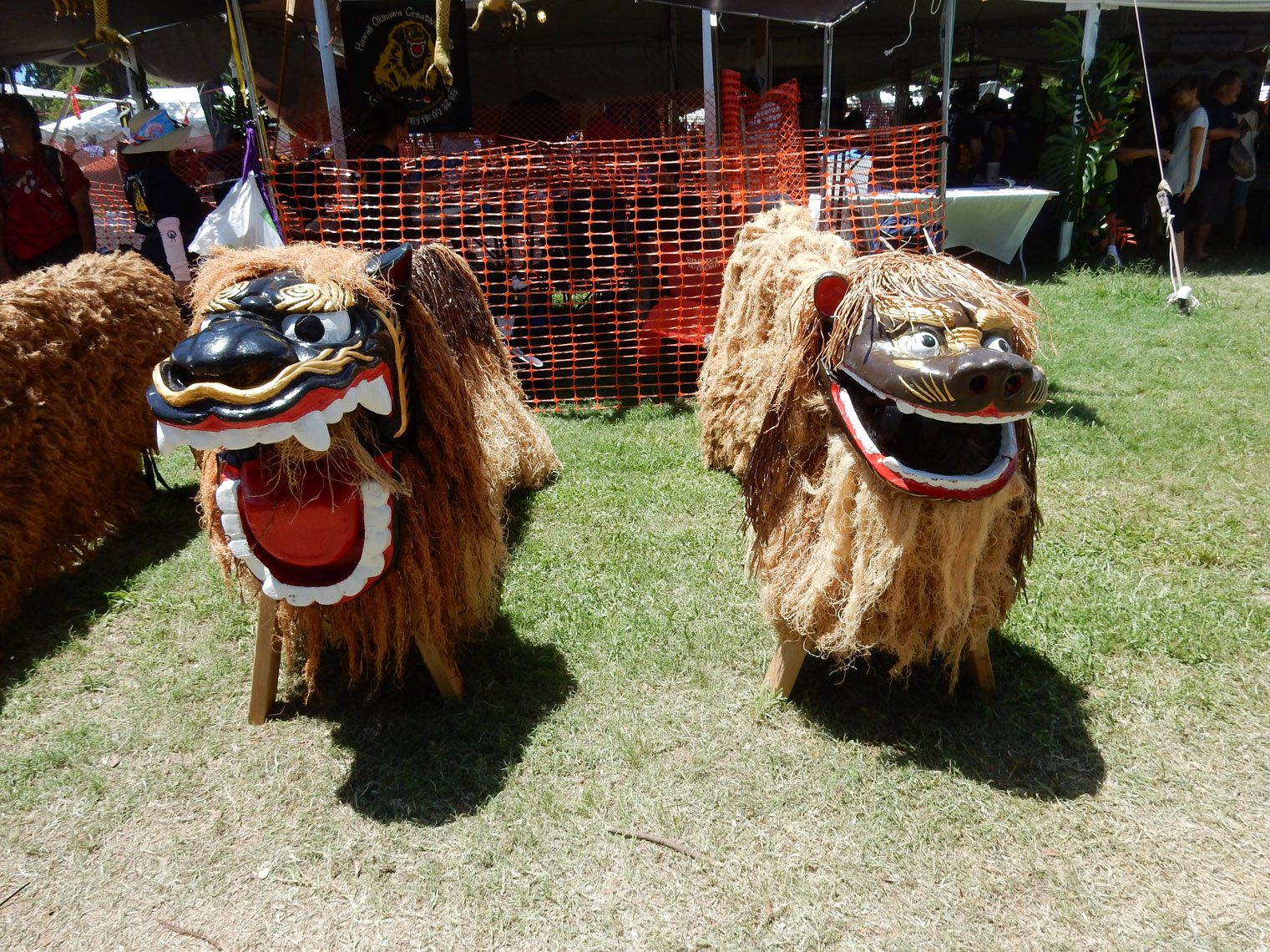 There were quite a lot of tents, some guarded by shisa (Okinawan lions). Naturally, there was plenty of food, including a tent that just sold packaged Okinawan snacks and cooking ingredients to take home. So what is Okinawan food? Well, some of it is standard Japanese food, but they're known for a wide variety of pork dishes (which I don't eat, so I'm glad there was chicken too) and andagi (fried dough balls that are a bit like donut holes (though not as sweet)). There was also a bunch of kids games and a cultural tent, which had several displays about Okinawan history and culture. Not quite a full museum, but interesting to look through.