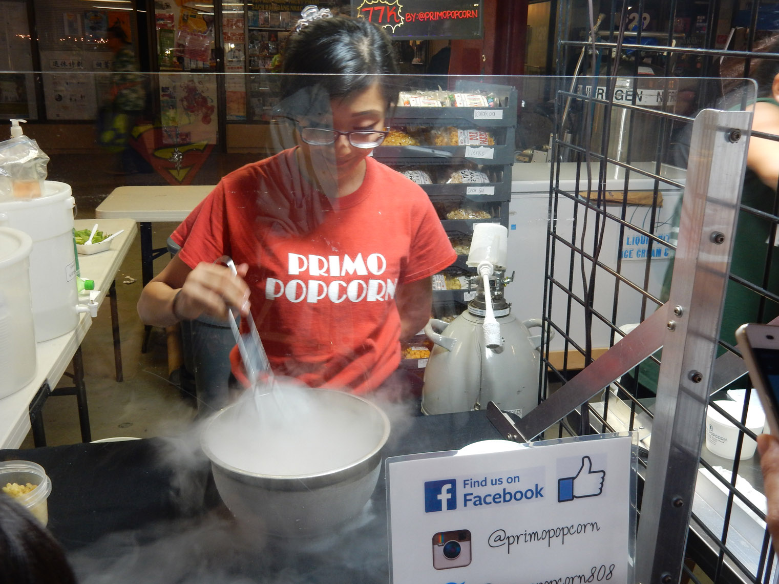 The moon festival is a Chinese holiday that involves moon watching and eating moon cakes. There's never been a big celebration for it here in Hawaii before, but the Chinese Association decided to start one up this year, so Connie and I headed over Saturday night to check it out. Naturally, it was in the cultural plaza in China Town. I was expecting quite a lot of food booths, like at the Chinese New Year celebrations. On that level, it was a little disappointing. There weren't as many booths and most were decidedly non-Chinese snacks. Still, I got to try ice cream made with liquid nitrogen, which was pretty cool. Didn't really taste any different (good ice cream though), but still cool.