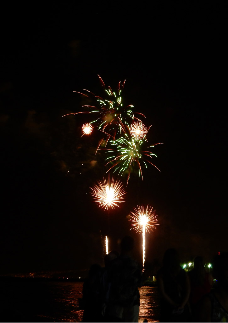 To commemorate the 70th anniversary of end of World War II (though it's technically not for a couple more weeks), they had a special fireworks show near Pearl Harbor. I'd actually first heard about the show months ago, but had all but forgotten about it. Fortunately, they had some articles in the paper earlier in the week.
