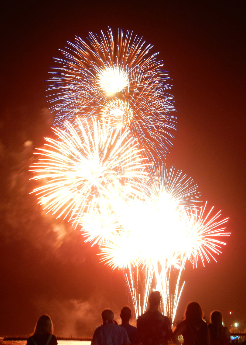 For the show, they opened up Ford Island to the public. It's a small island off of Pearl Harbor. It's mostly military housing (not sure which branch) so access is normally limited. Though the USS Missouri and the Pearl Harbor Aviation Museum are there too (which you can take a shuttle bus to). Anyway, there were some restrictions on what you could bring (including water bottles, annoyingly). Fortunately, I arrived before it got too crowded and found a nice spot in the park where the festivities were taking place. There were some food vendors set up (though by the time the sun had set and I got around to looking for food, the lines had gotten ridiculously long) and various local groups playing music As time went on, there were eventually speeches by various Hawaiian and Japanese officials (the fireworks show was run by the city of Nagaoka, which is famous for its annual fireworks festival). They even brought J-Pop singer Ayaka Hirahara to perform her song, Jupiter (sorry for the poor sound quality, the strong wind made it hard to get a good recording), which was one of the songs they set the fireworks too. As you can see, I decided to try something different this time and do a little video recording of the fireworks instead of just taking photos. Though I took a few pictures too. This is the first time I've tried photographing fireworks with my new camera and I noticed that its fireworks mode uses a much longer exposer time than the one on my old cameras did. That has some pros and cons and, in the future, I'm not sure if I'll rely on it or just use some custom settings. Still got some good shots though. As you can probably tell from the photos, it was a pretty great show (the second I've seen put on by Nagaoka (which really lives up to its reputation)) and a fun evening.