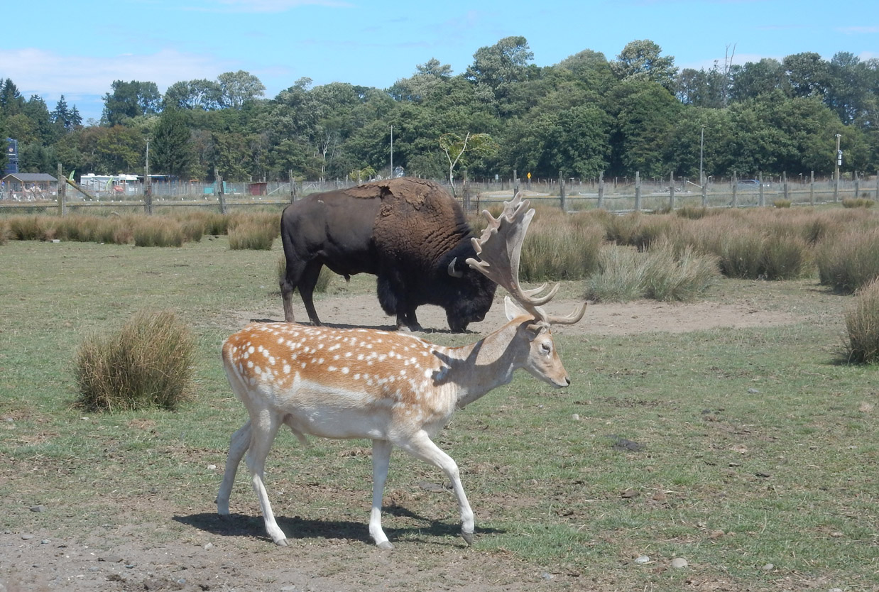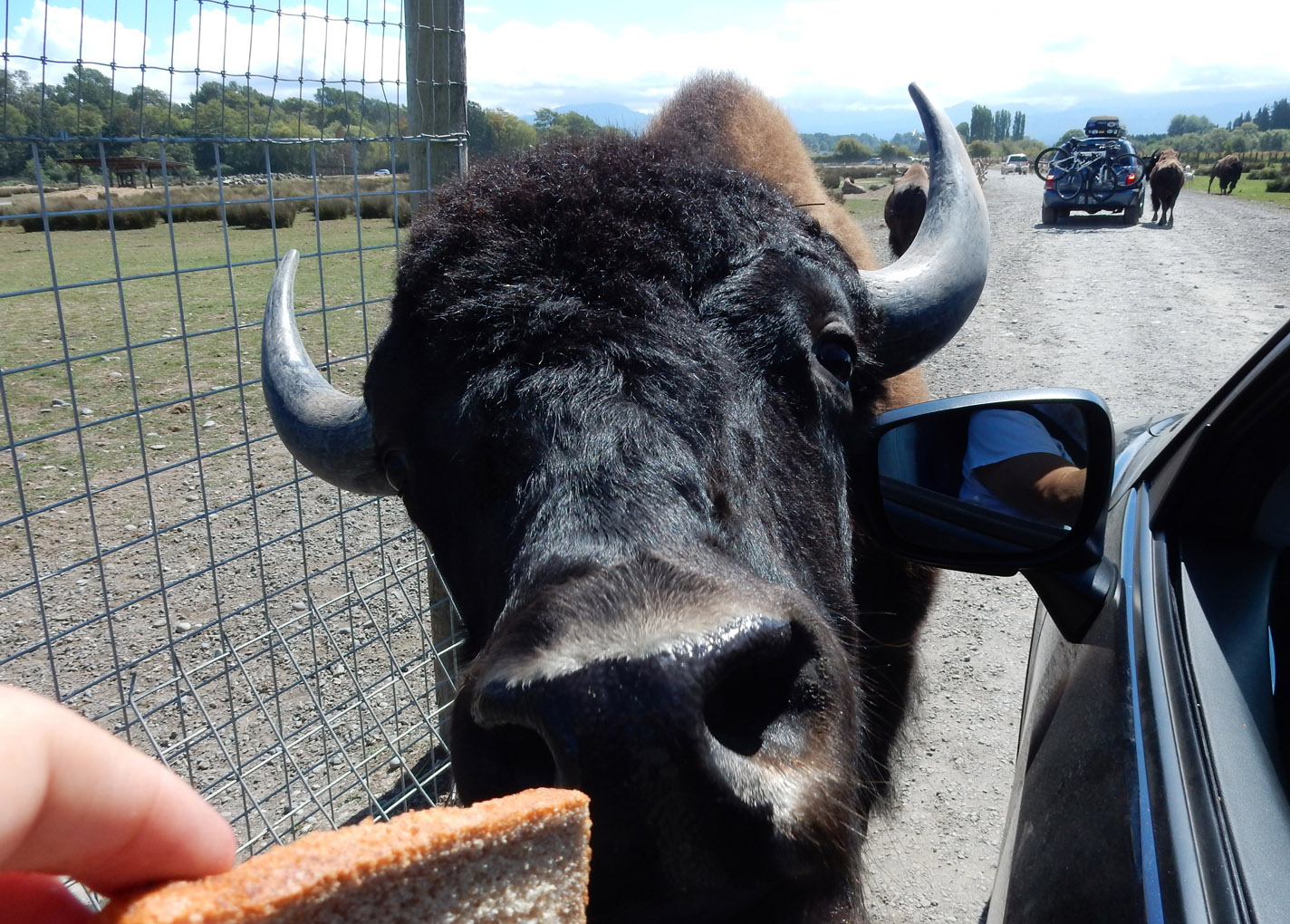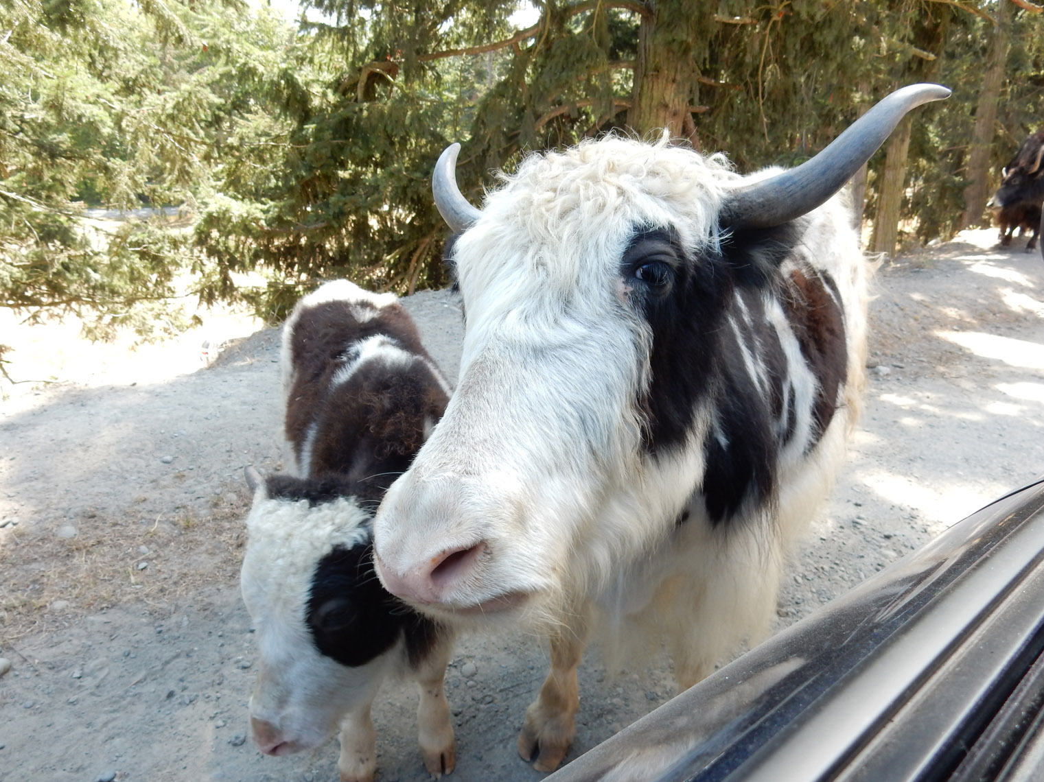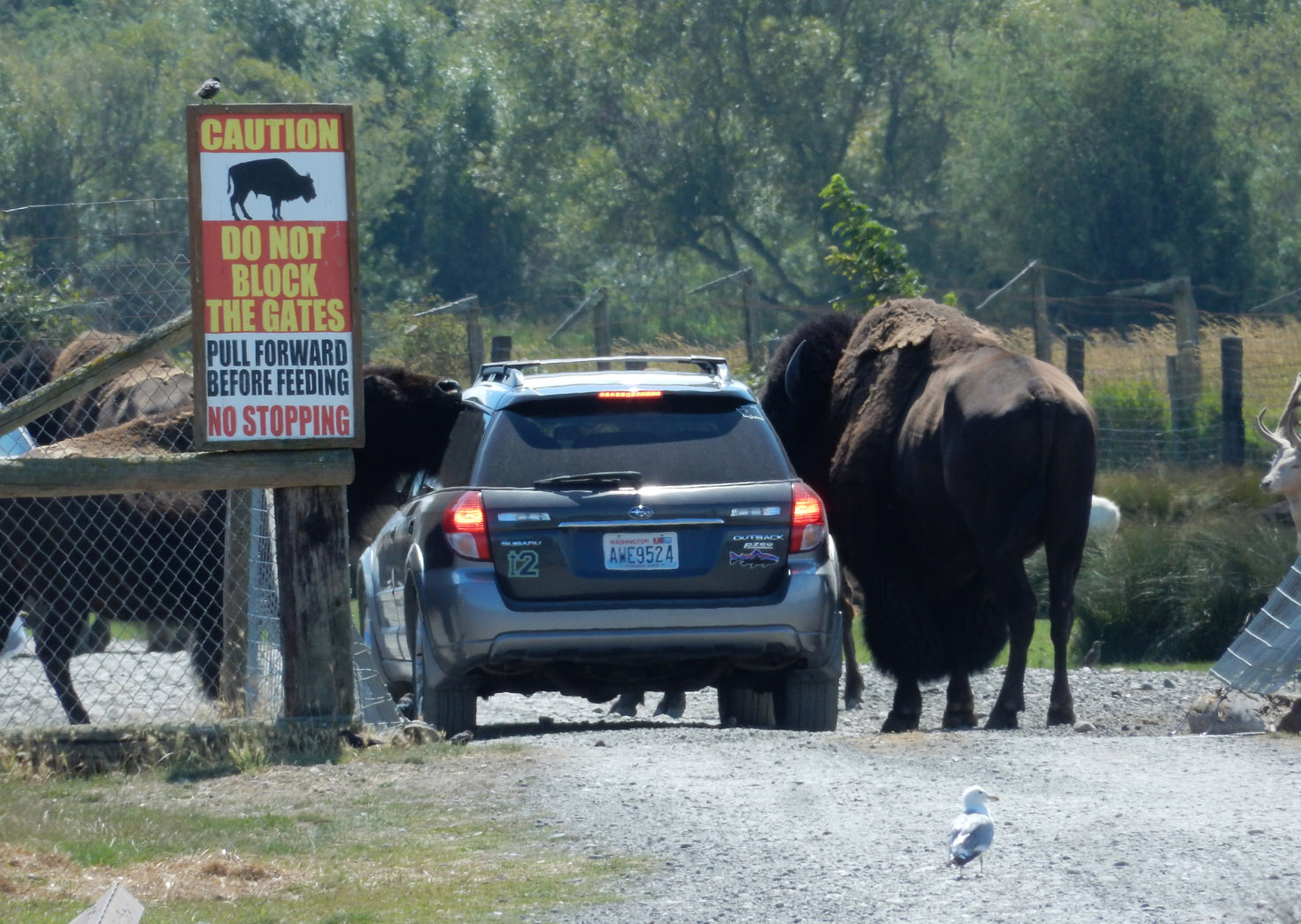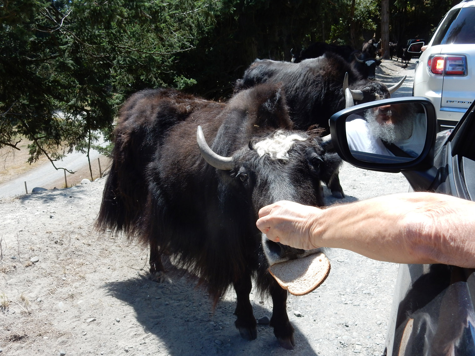 Then it was off to Olympic Game Farm, an animal park. Interesting side note, they used to provide trained show animals for use in Disney movies then, when that business dried up, started the farm to take care of the retired animals. The main part is a self-guided driving tour (though you have to pay by person, rather than by car, which is a little annoying). Anyway, after getting tickets, and buying a loaf or two of surprisingly cheap whole wheat bread, you're off. Basically, you drive through open animal habitats while feeding them bread. First up, yak! Despite trying yak milk, yogurt, and meat when I was in Yunnan last year, I don't remember seeing live ones before (though I might have at a zoo at some point). Anyway, the yak (or is it "yaks"?) were cool. They hang out by the road and will walk up to your windows and eat bread out of your hand. There were even some babies. After the yak, we came across some llamas, which turned out to be rather snobbish. They refused our bread, but did eat some from another car. There was a zebra too, though it unfortunately wasn't in the mood for bread at the moment. Then there were some birds scattered about. Some were pretty normal, but there were a lot of peacocks, including babies. After that, we came across the park's most famous animals, Kodiak bears. The bears are trained and will sometimes even wave to you. Naturally, they can't come right up to the cars, but you can still feed them. Leaving the bears behind, we came across some elk. They were a little more aggressive and would stick their heads into the windows, hoping for bread. But they had nothing on the bison. You're actually not supposed to stop when you're in the areas with the elk and bison, probably because they'd swarm the car and you'd neve be able to get anywhere. Anyway, the bison were fun to feed but they were really aggressive and would stick their heads and long tongues way into the car if you let them. It got a little crazy at some points. There were some cute European deer mixed in as well, though they were more mellow, only coming up to the car after the bison had lost interest. There were also a few other animals, which you couldn't feed, in cages such as tigers and emu. Driving through and feeding all the animals was a lot of fun and that's the main point of the park, though they also had a small reptile house and aquarium, along with a few other animals including a couple of very cool birds and a goat with a pretty amazing beard.