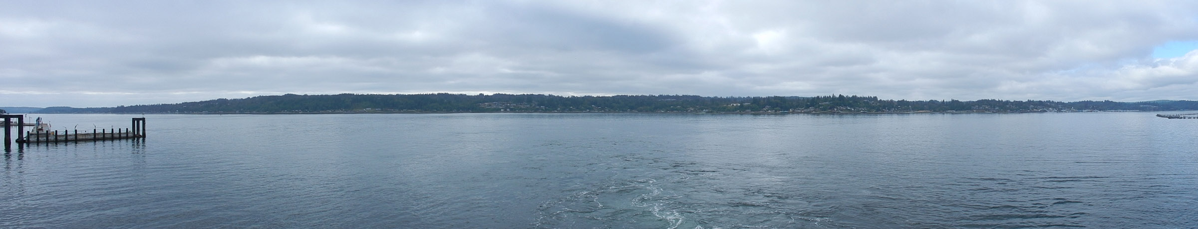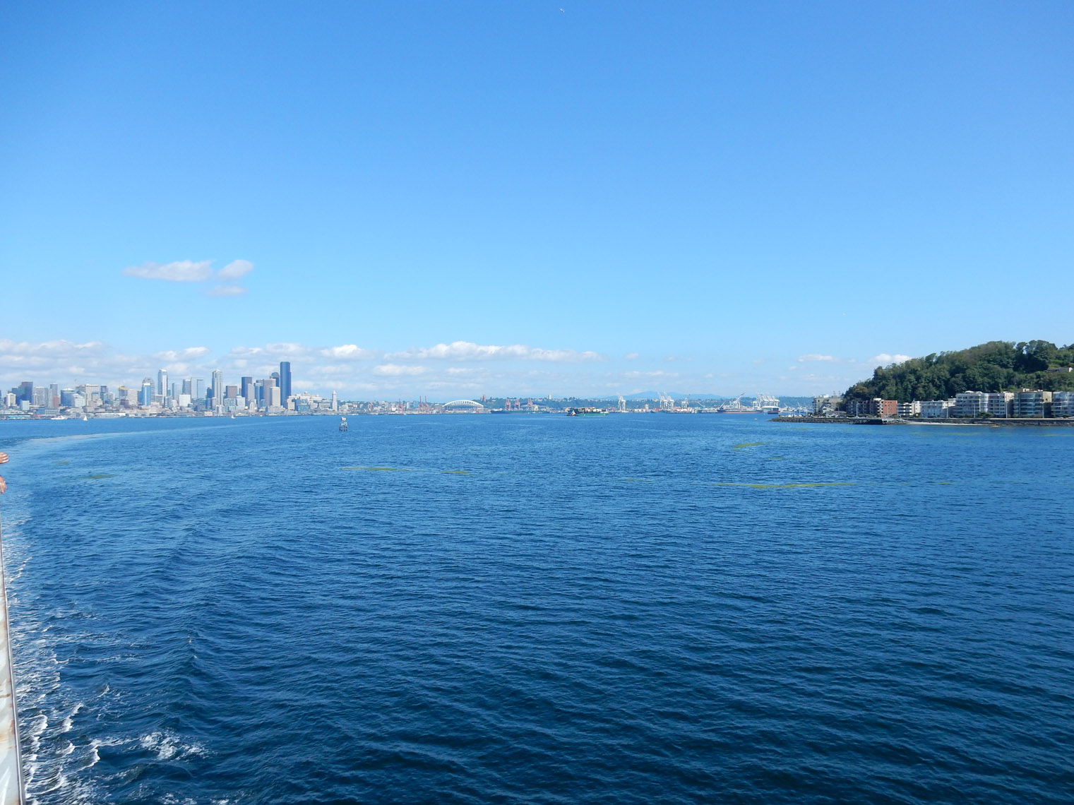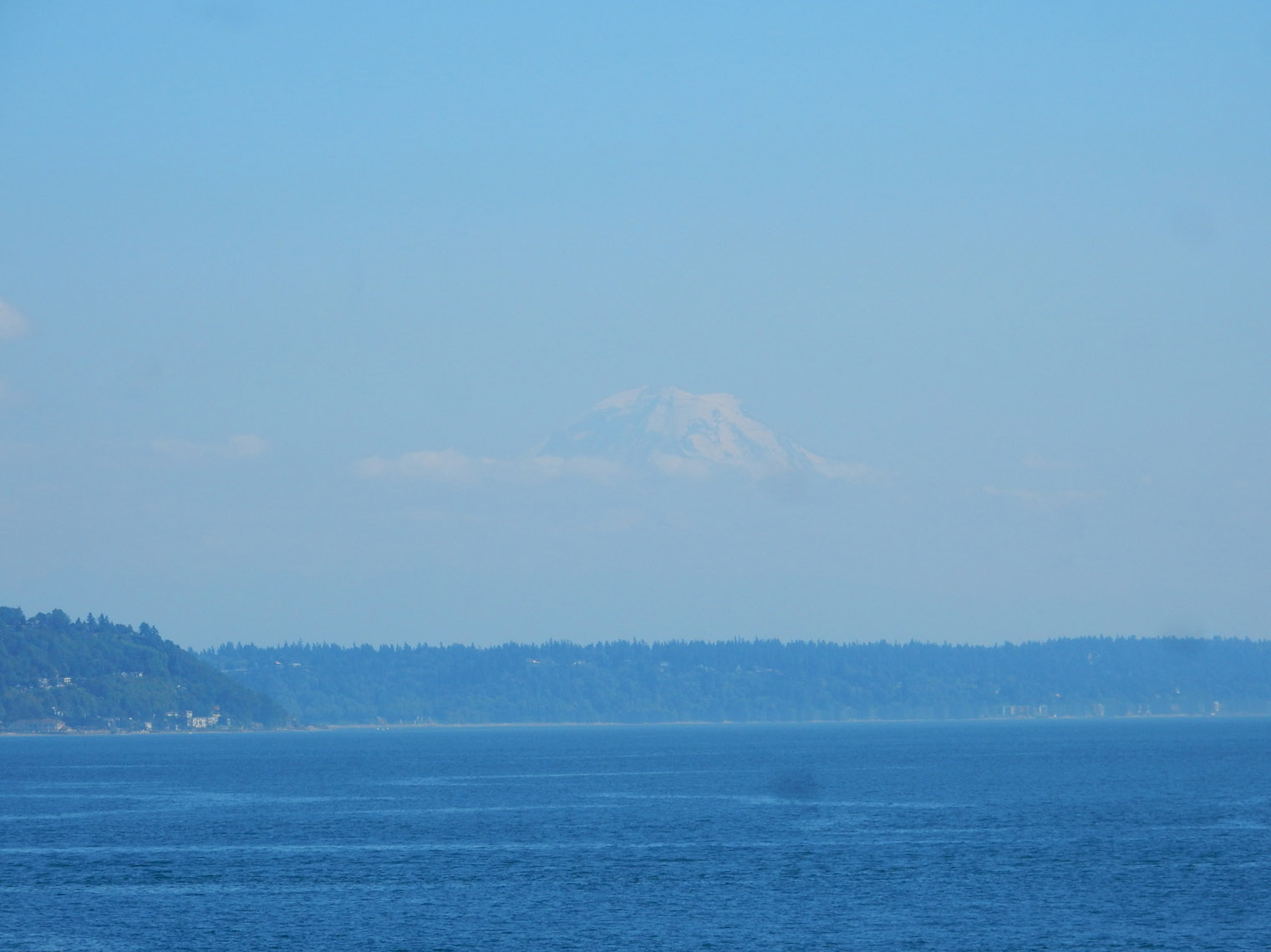Once we'd finished in the museum, we started making our way back to the ferry, with a stop at Starbucks (we were in Seattle after all), albeit a normal one that wasn't super crowded. Since the weather had improved, the ride back had better views, including a hazy glimpse of Mt. Rainier in the distance.