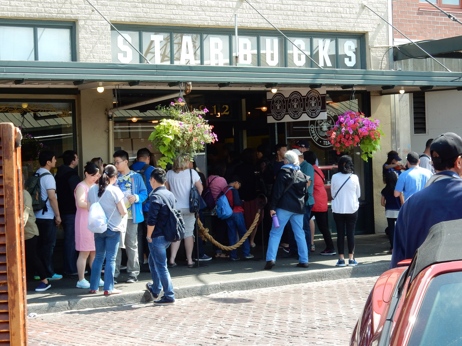 Moving on, we came across the first Starbucks...or not. Actually, it was a newer location done up to look like the first Starbucks (complete with the first Starbucks exclusive merchandise). Presumably, the goal is to help reduce the lines at the real first Starbucks, which we came across a bit later in the day. Didn't go in though, since we probably would have had to wait in line for an hour.
