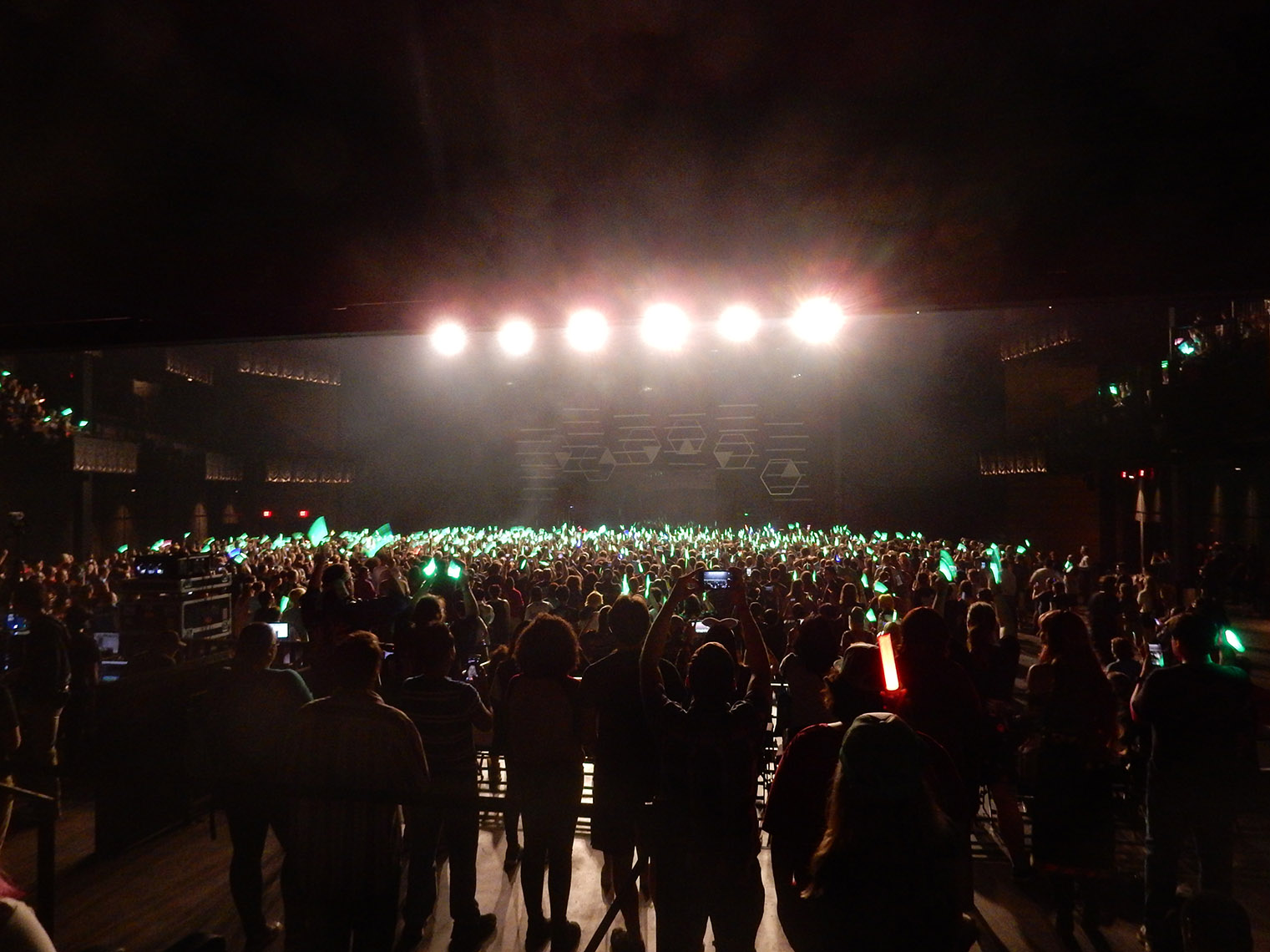 The show was at a club in the harbor area, where I hadn't been before. Seems like a nice place to hang out, eat, and shop, though parking was a bit of a pain. Even more so because the scanners in the garage were glitching and didn't recognize my parking pass. Annoyances aside, I did eventually park and get to the show. I was there fairly early, so I had chance to look around a bit and grab a good spot (unless you spent a lot more for a seat on the higher levels, it was standing room only). I opted to stay a bit further back from the stage in return for a less crowded area and a higher vantage point, which paid off when the place filled up. It was a pretty large, and very passionate, audience. On a side note, they must have made a fortune on those glow sticks, you could only buy them at the official merchandise table it seemed like nearly everyone had at least one.