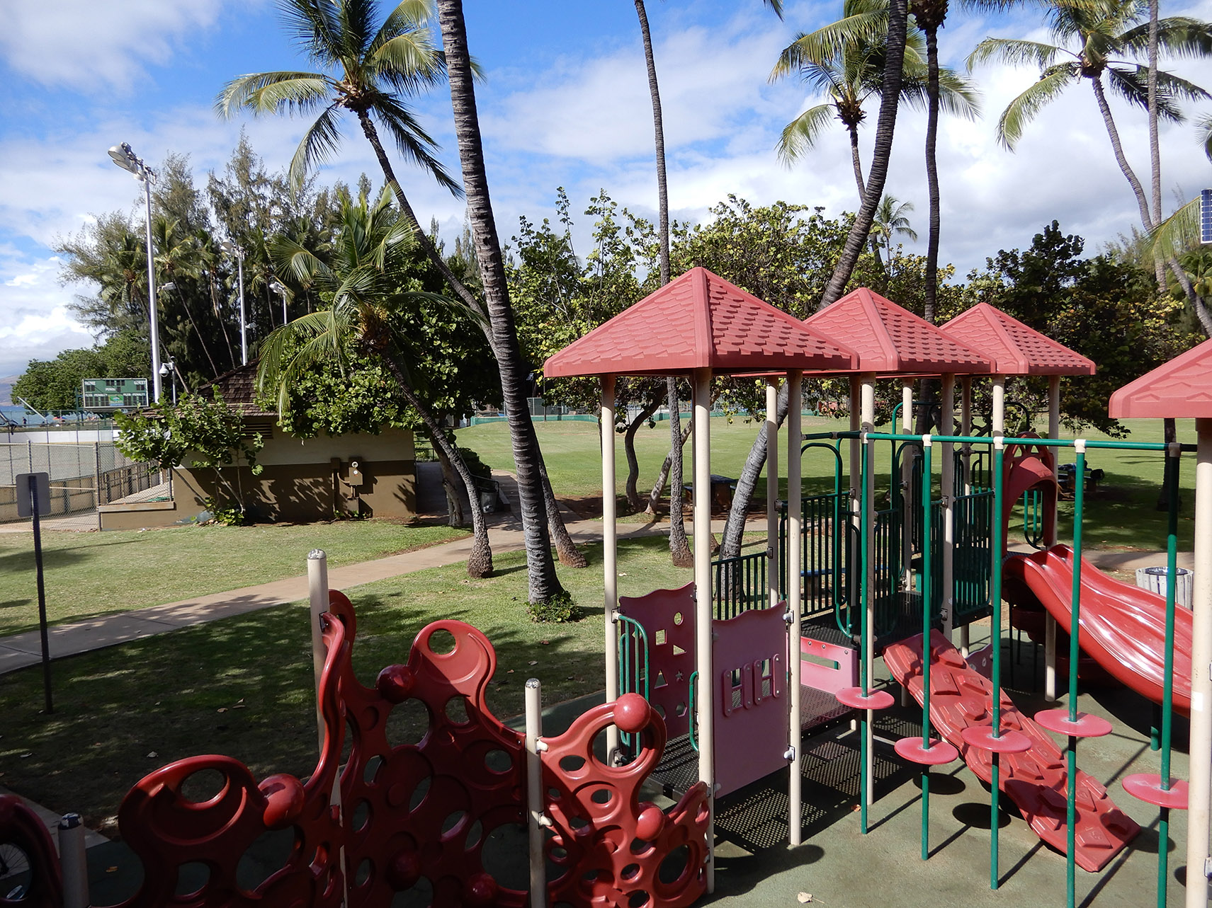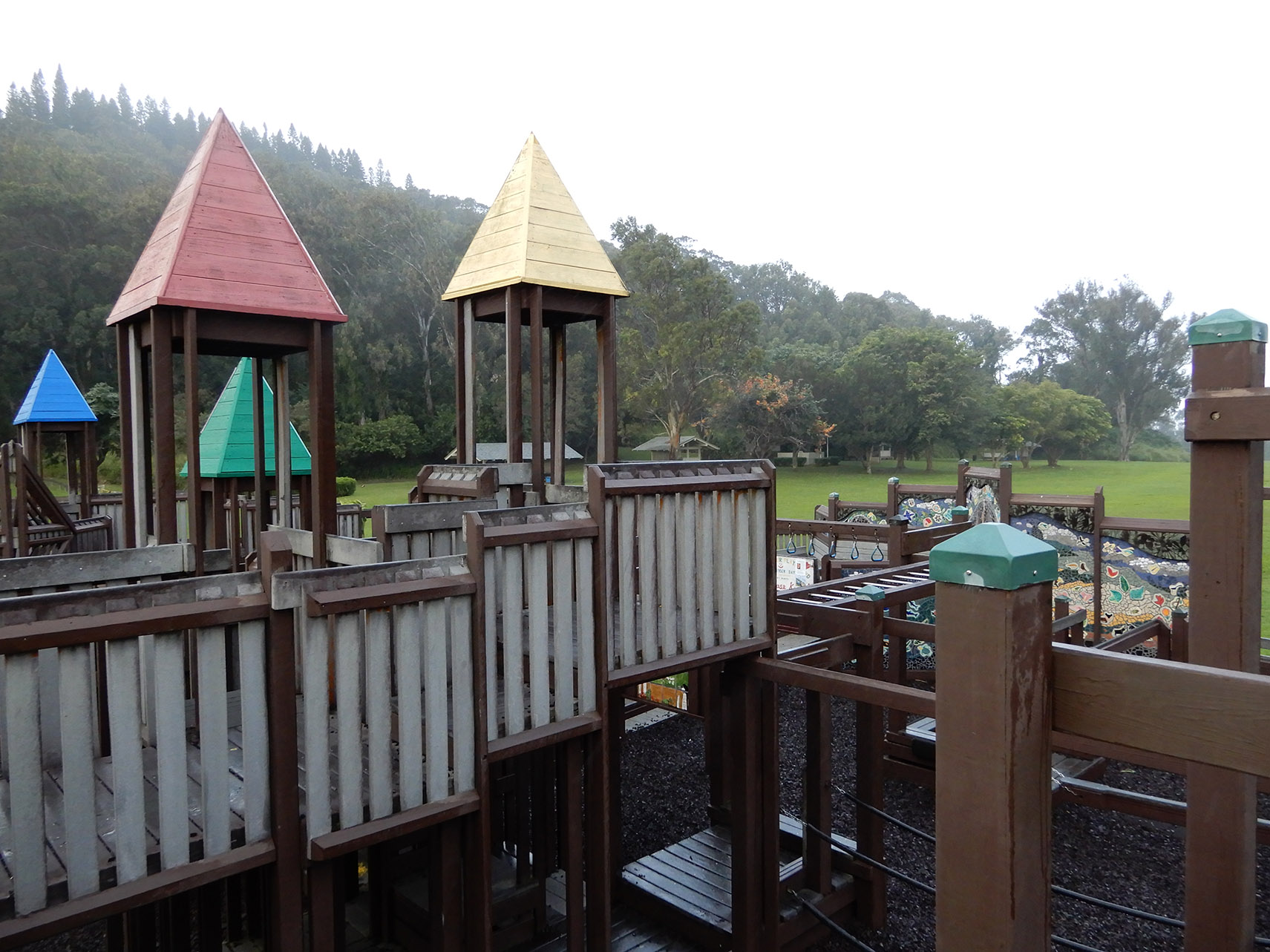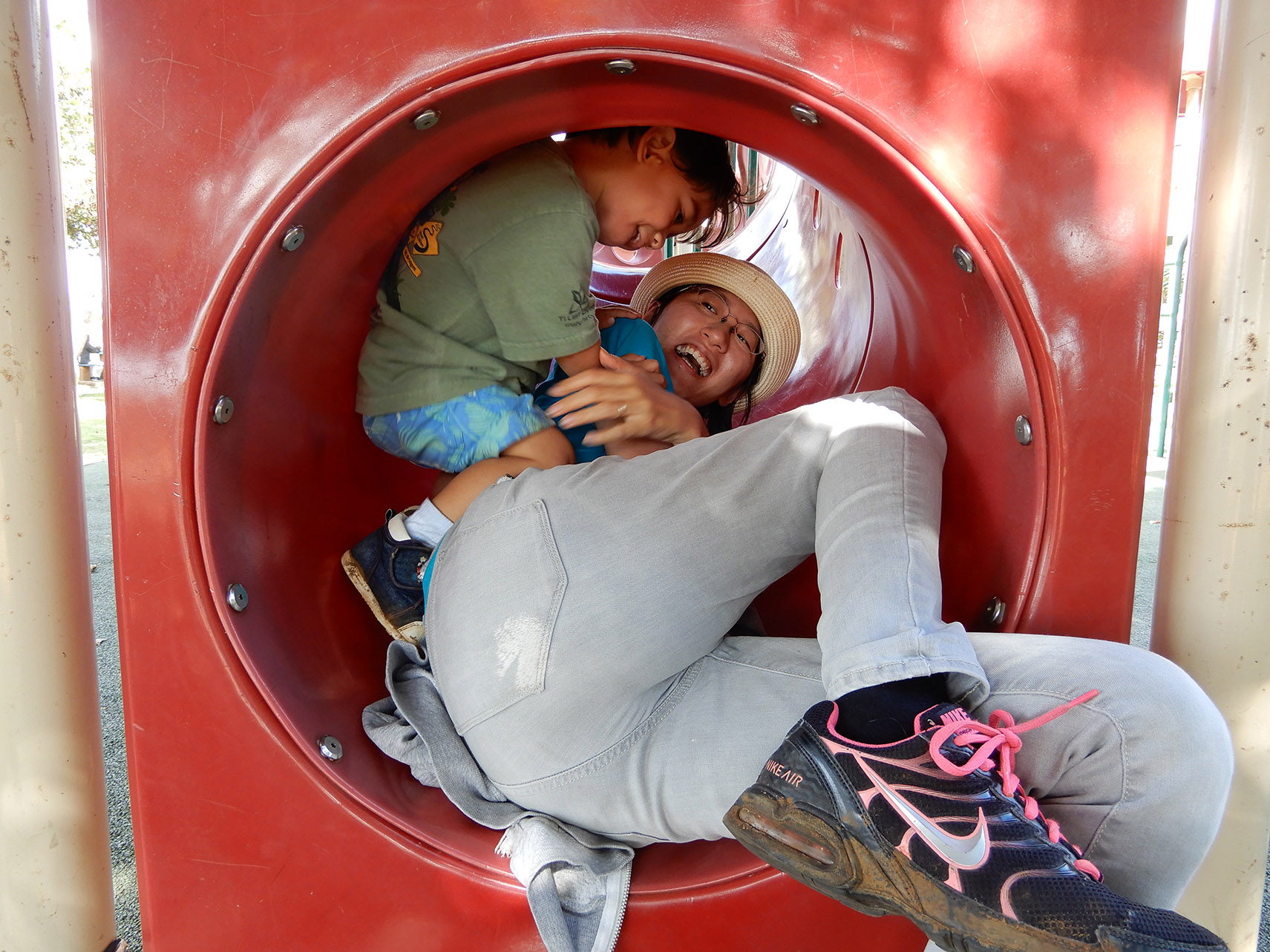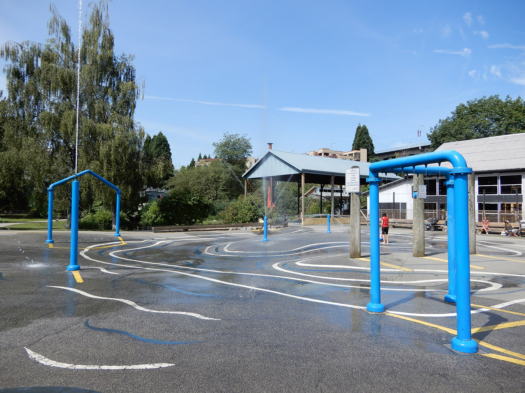 Since it was a nice day, we decided to take the kids to the nearby water play area. A park with a massive splash pad (only part of it is shown in the photo), fountains, and even a decent size water slide, all free and open to the public. Unfortunately, although the sun was out (yesterday and today featured the best weather we've had on this trip so far), it still wasn't that hot and the water was freezing. We still had fun taking the kids on the slide though.