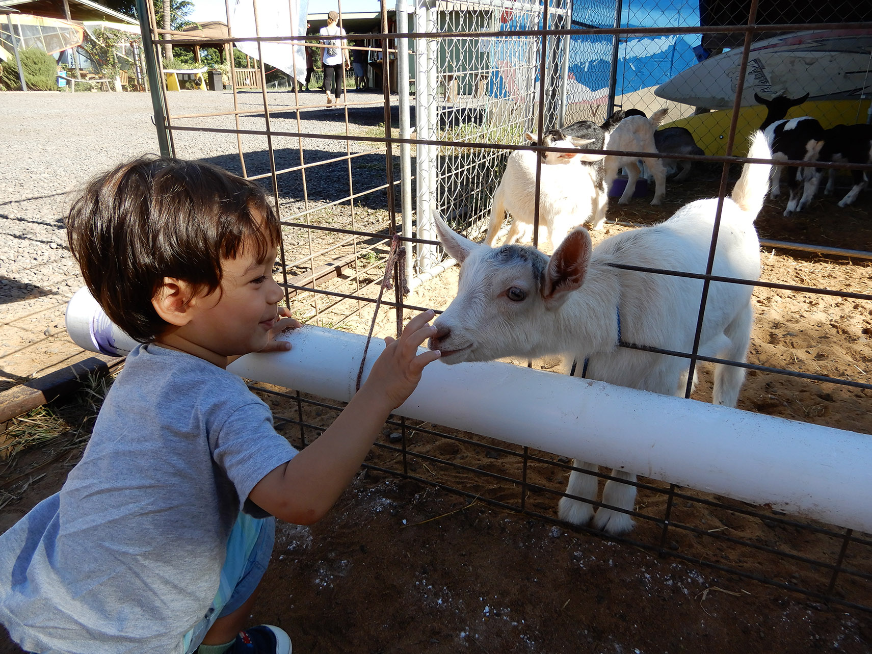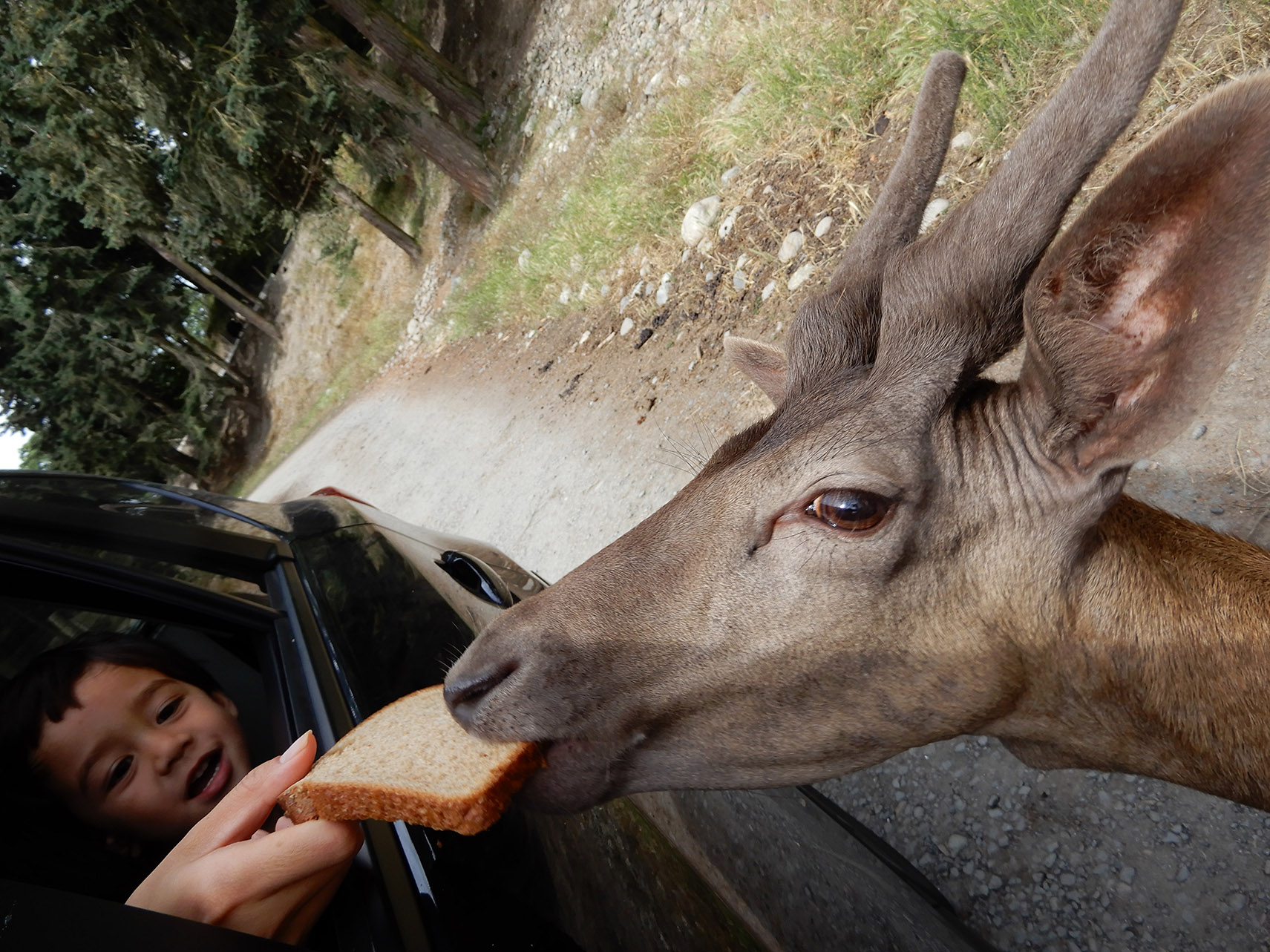 The main part of the park is a driving course where you move slowly along the road and stop to feed llamas, yaks, deer, antelope, and more. Not to mention the famous waving kodiak bears (though they didn't seem to be in a waving mood for us). Zack did love it, though he couldn't seem to bring himself to feed the larger animals directly (he had Connie do it). Isaac, on the other hand, got a bit freaked out when the animals started putting their heads inside the car. It took us about an hour for a leisurely drive, and to use up all our bread (on that note, unless you're by yourself, I'd recommend getting at least two loaves). After that, we spent a while longer in the play area which featured a goat petting zoo, reptile room, and a few other animals and things for the kids to play on.