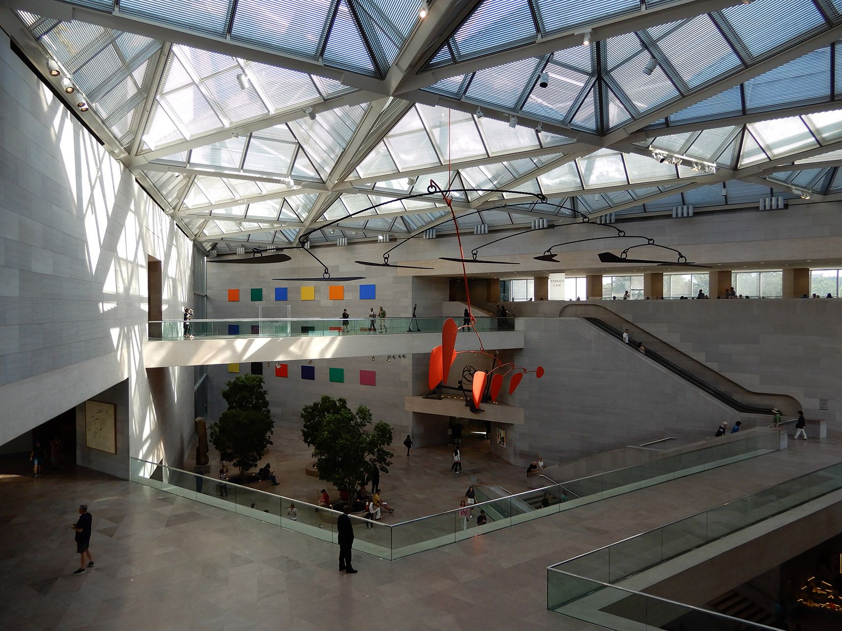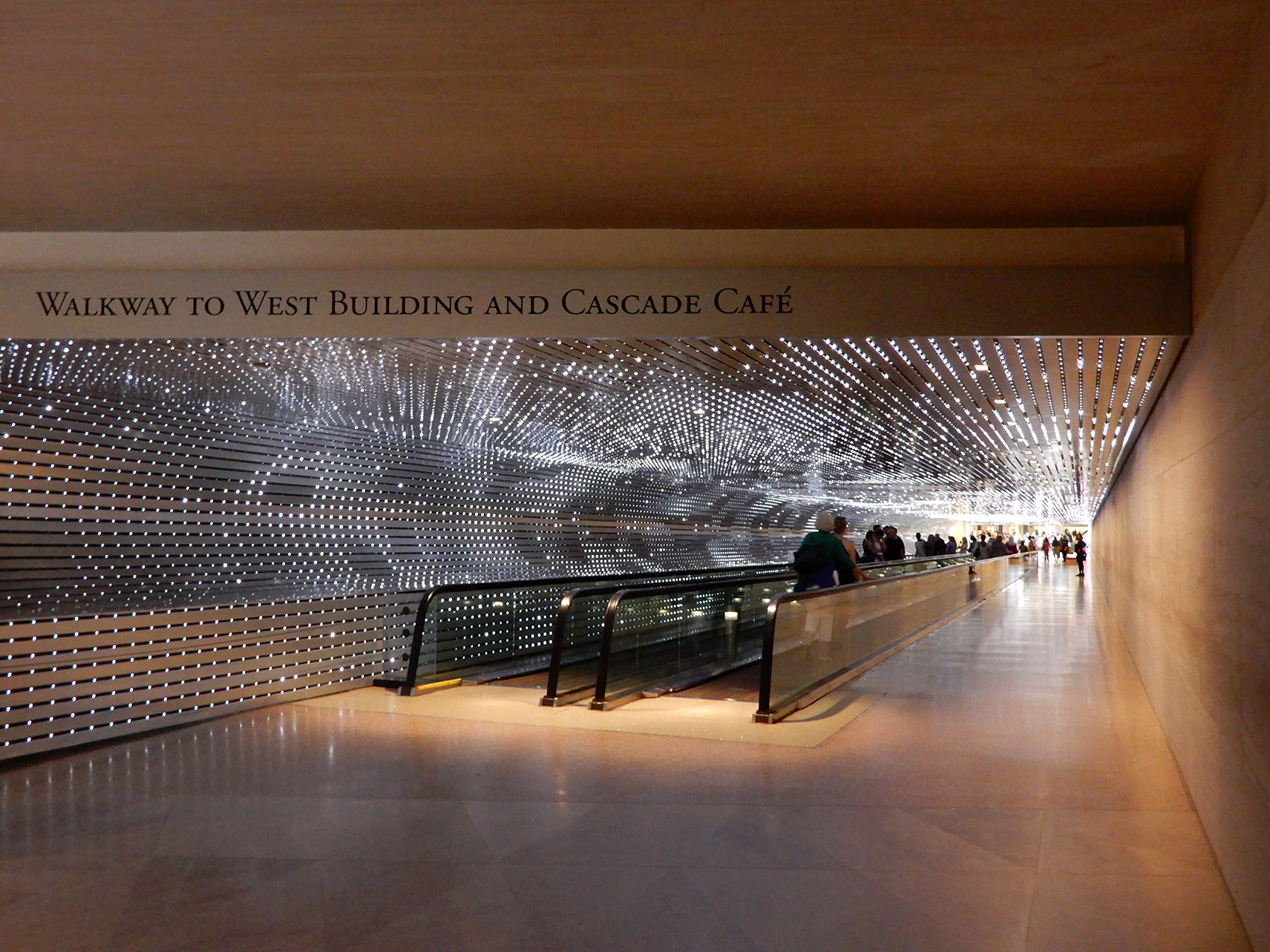 I left the museum around 3 and figured that, as long as I was in the area, I might as well go somewhere else for a couple of hours until things started to close. While I was thinking about what museum to visit next, I noticed a building next to the National Gallery that I didn't recognize. Turns out, the Gallery, which I thought Connie and I had explored pretty thoroughly before, has an entire Eastern building that we totally missed so I went in there. If you read my travelogue entry about the National Gallery, you might remember that I really appreciated the fact that it was focused entirely on old classics, without any modern art. Well, turns out that all the modern art is in the East Building. So yeah, looks like Connie and I didn't miss much of anything after all. Anyway, it didn't do anything to change my opinion of modern art. I mean, the giant blue chicken was kind of cool, as were the plaster casts of things you really shouldn't be able to make plaster casts of. And there were works by guys like Picasso where I can appreciate the work involved, even if it isn't my style. Most of the artwork though wasn't just bad, it felt to me like it was both lazy and lacking in creativity. For example, blank canvases with a border, a fiberglass board, and what looked like some props from a toy store. Many of the pieces didn't even have titles, which felt to me like the artist not only couldn't be bothered to put any effort or creativity into their "art", but they didn't even feel like putting in the effort to come up with a name. It was close competition, but I think this one was the worst. It's literally an empty room with a piece of string stretched from one corner to the other. Sometimes I wonder if some of these artists like to get together and laugh about how people spend massive amounts of money on these things, not to mention hours upon hours contemplating them and writing about them. Anyway, the best part of the East Building was the underground passage to the Main (West) Gallery. Not only is it cool and sparkly, but it takes you to where all the good art is. There's a nice cafe down there too.