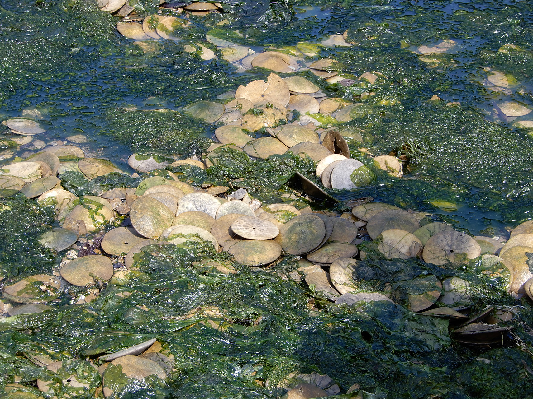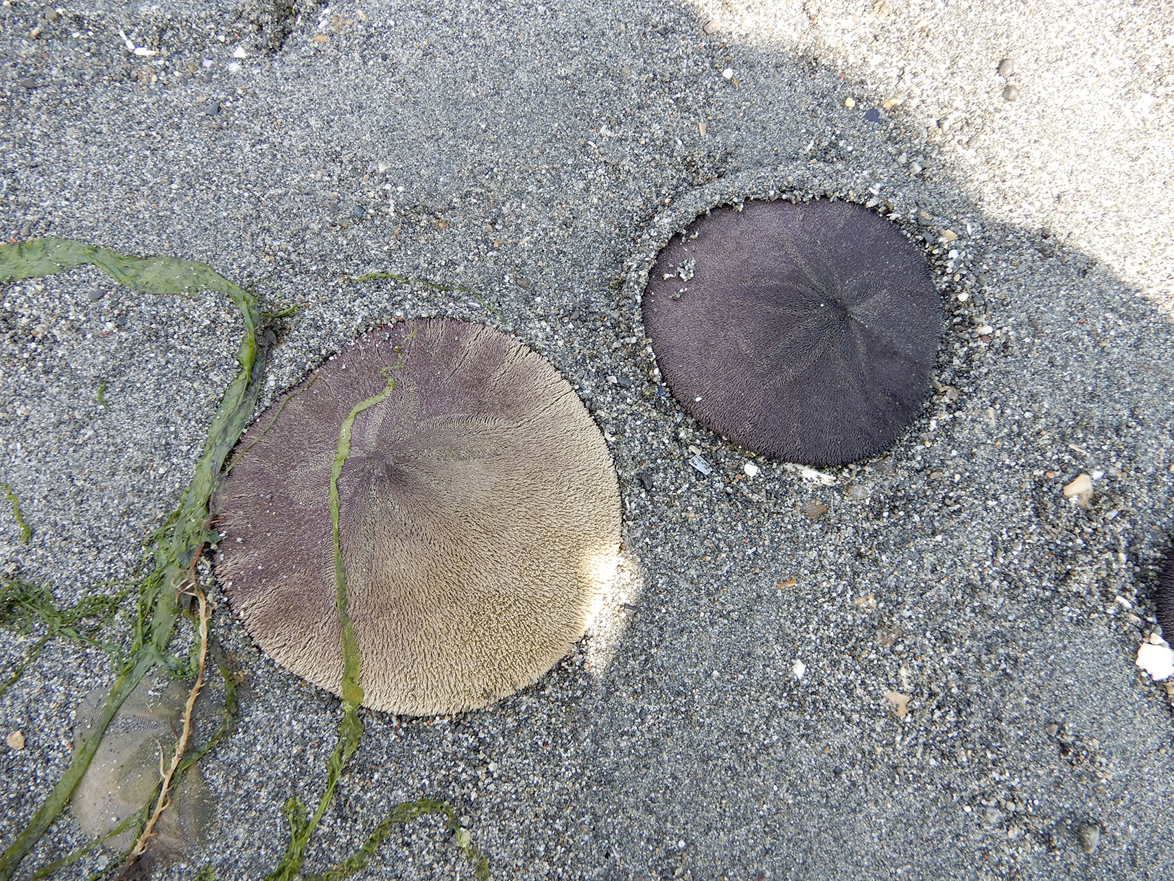 We had a lot of time to kill on Saturday, so my brother suggested driving to the nearby Fox Island at low tide to see the tide pools. Actually, tide pools probably isn't the right word, since it's a beach without any formal pools. Though there were some shallow pools of sorts scattered across the sand and we saw some starfish and crabs. What was really impressive was the massive amount of sand dollars. While I have seen them on a beach before, they were always rare (I'd maybe spot one or two if I was lucky). Here, it was hard to walk in places without crushing them. In addition to the familiar white, there were also a number of furry dark colored ones, which I assume is what they look like when they're alive. So, while I've seen much better tide pools elsewhere, the sand dollars certainly made Fox Island worth a short visit.
