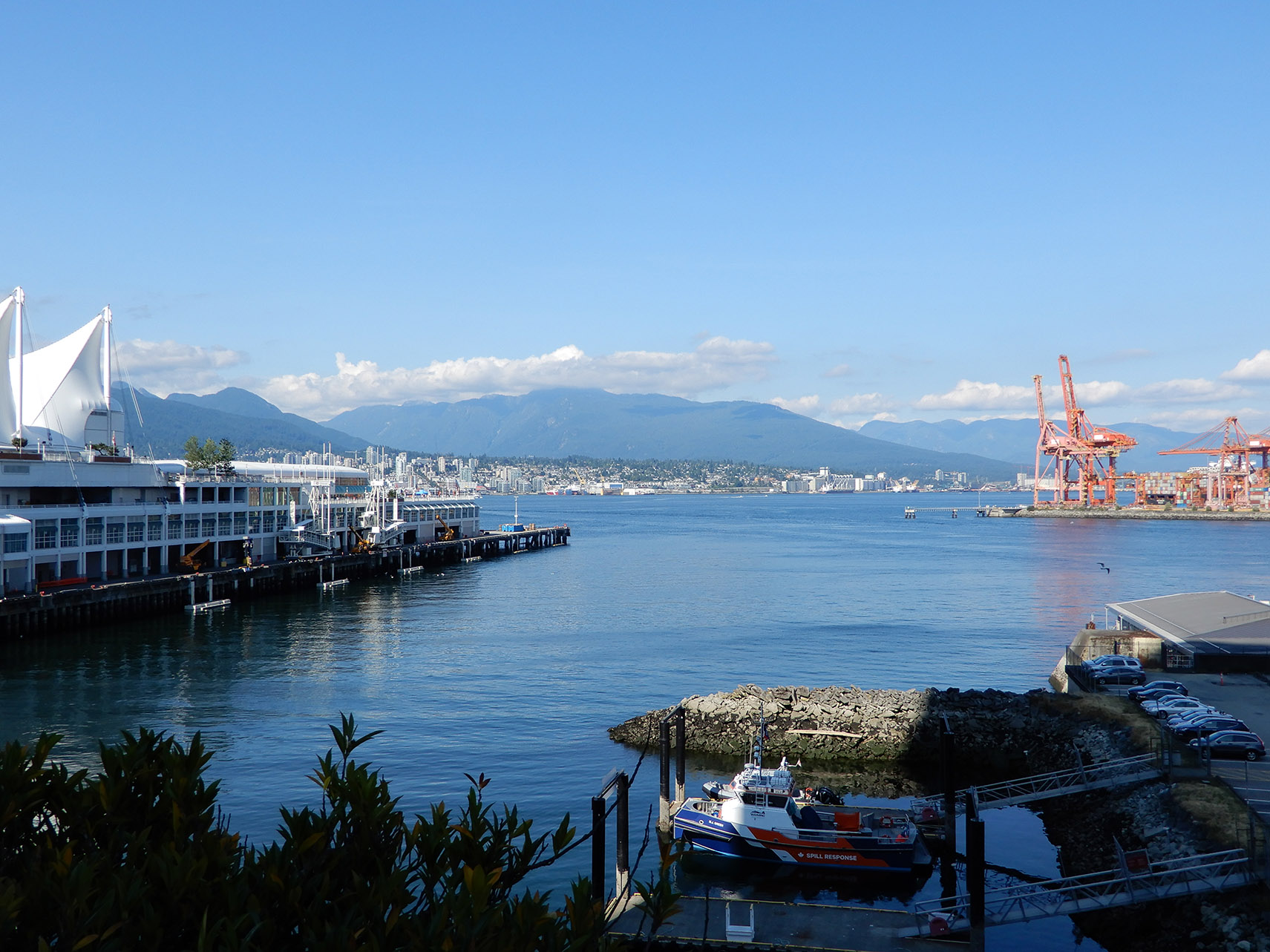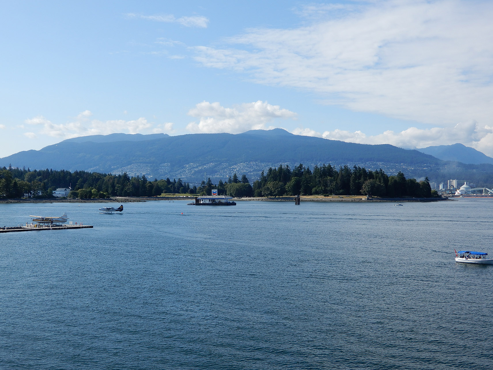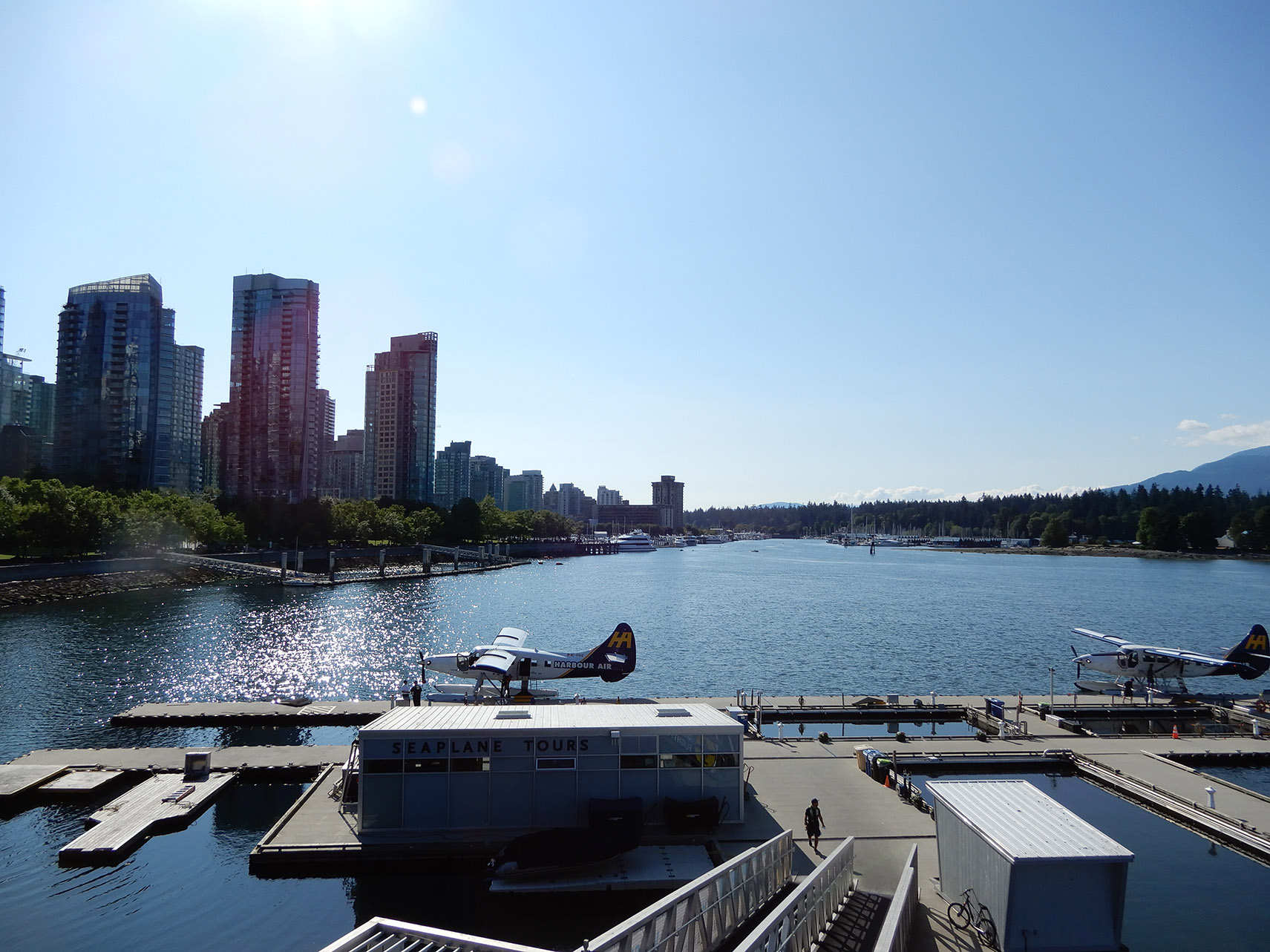 Once we'd finished walking around, we drove another half hour to so to Vancouver and checked into our hotel. At that point, it was too late in the day to do any major sightseeing, so we took a walk through downtown Vancouver to the nearby bay. The views were nice, and there were lots of seaplanes in the water and even a floating gas station to service them.