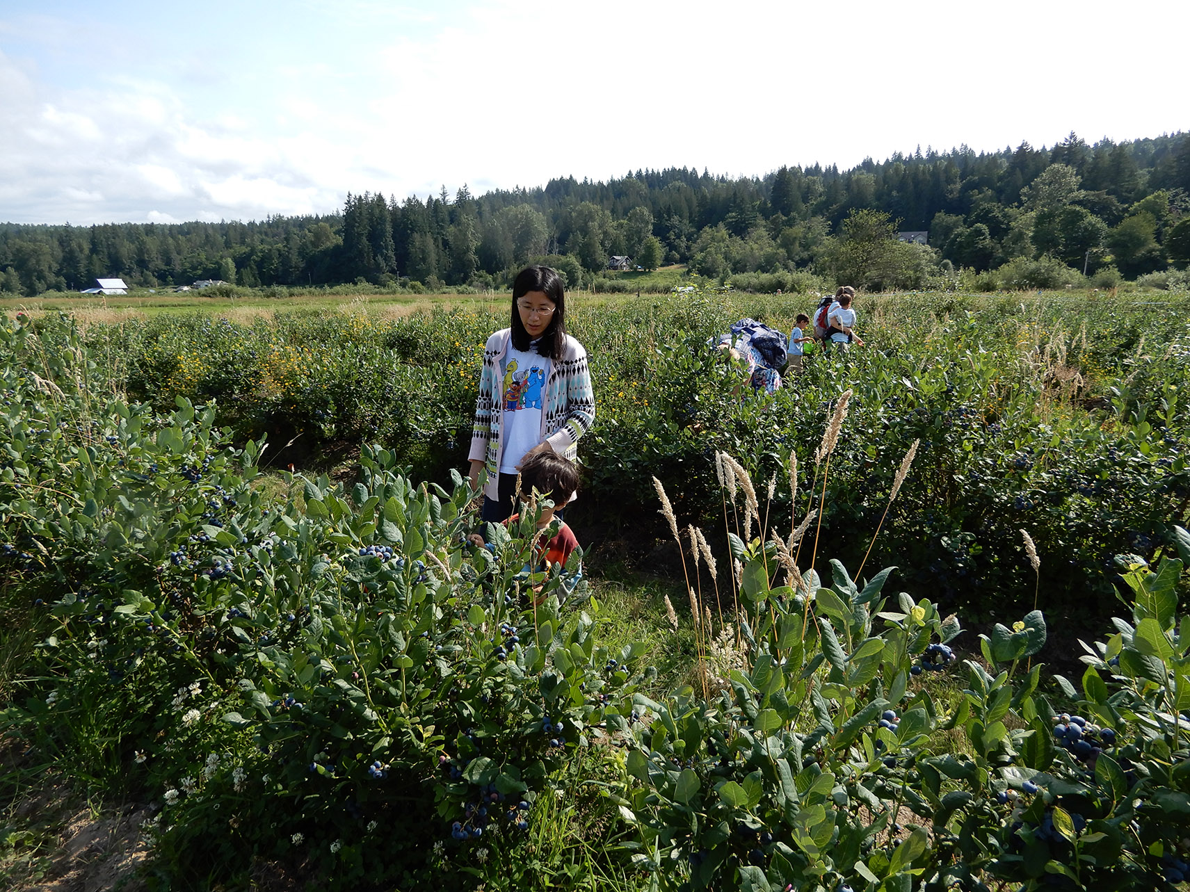 In this case, Carnation is the name of a town, not a flower, that's located around 45 minutes east of Seattle. My entire family made the trip we started the day picking blueberries at an organic berry farm. I was hoping that Zack would be old enough to help with the picking and he was...sort of. He quickly got the idea and had no trouble picking the berries and putting them in the bucket. I didn't even have to worry about him eating any since raw blueberries are one of the very many foods that he would likely enjoy, but rejects based entirely on appearance (really annoying when trying to feed him, but useful in this situation). He also had no trouble figuring out that I didn't want any green blueberries in the bucket...though that led him to start purposely putting green berries in so he could then take them out. Anyway, he eventually got bored and focused on other things but he did help out a little. We'll see how he does back in Virginia.