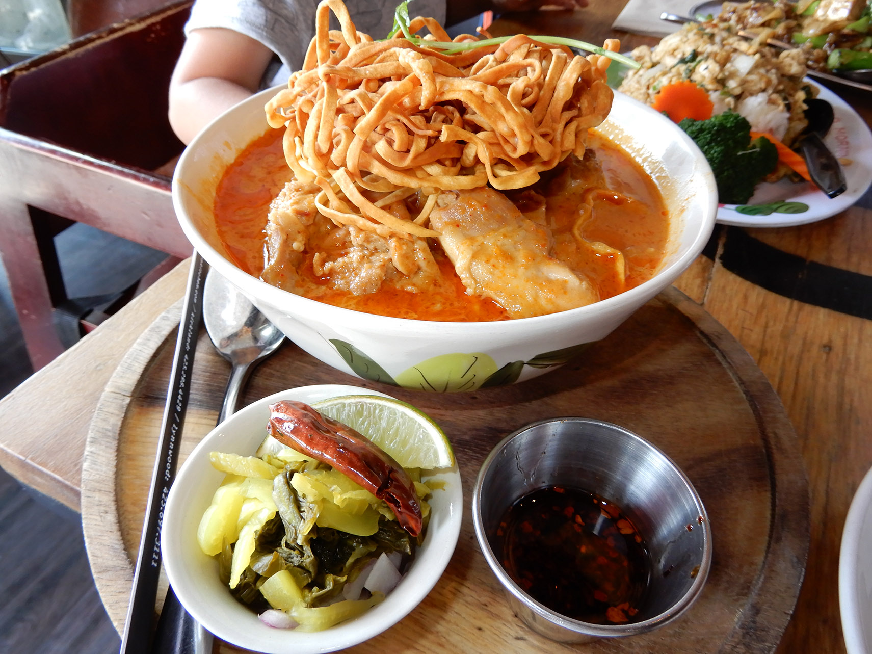 Leaving Carnation behind, we set off for the town of Kirkland (home to Costco), passing through some nice looking tech industry towns along the way such as Redmond (where Microsoft is based). Kirkland itself has an attractive downtown by the water and a lot of really good looking restaurants. Our group split up for the meal, with Connie and I visiting a very highly recommended Thai restaurant called Isarn. There was a bit of a wait, but it had one of the more unique Thai menus I've encountered, along with a dish that I'd only ever seen back at my favorite Thai place in Phoenix, Arizona. It was a great meal and I enjoyed walking around Kirkland a bit before we headed back to my parents' place to the kids could rest.