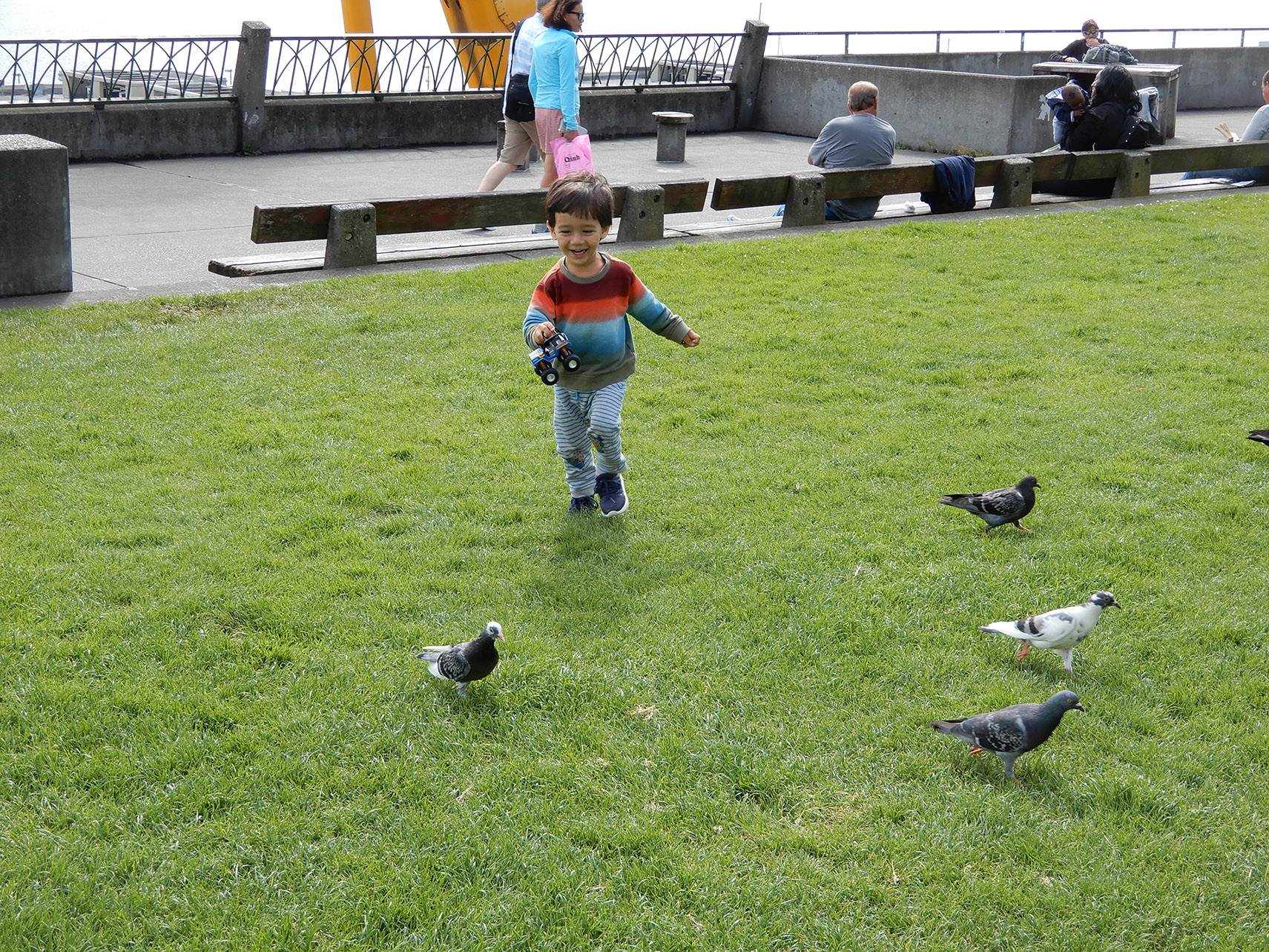 After that, it was back to the food market for lunch. Though I had to spend a lot of the time chasing after Zack, who was more interested in chasing birds than eating. In the end, I got some poutine (I figured that, being in Canada, I really should give it a try), which was good, though certainly not one of the more healthy options.