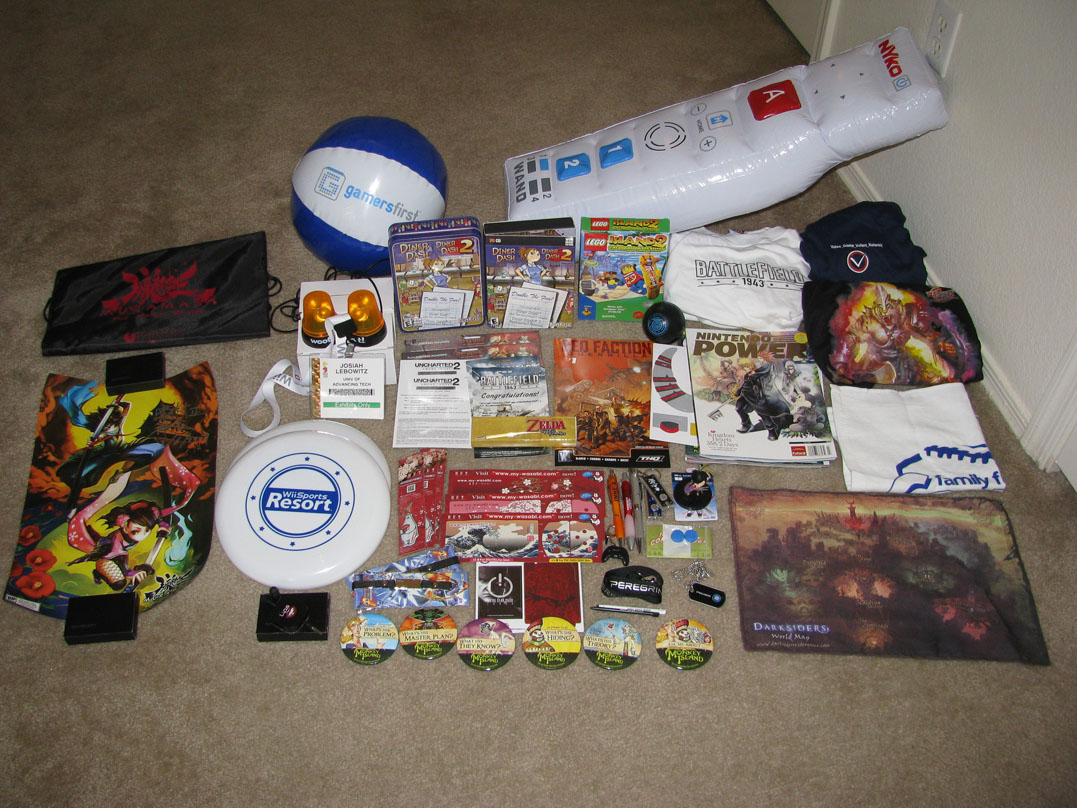 Sorry about the missed update Friday, but I got back home to E3 pretty late and needed to get some sleep before my next class. Anyway, before I get on with the rest of my E3 trip, I've got something else to mention. As part of my master's thesis, I've conducting a survey about storytelling preferences in media. It only takes a few minutes to complete and I need as many respondents as possible so please take the survey and tell your friends and family to take it as well. Now back to my time at E3... I decided to start out day 3 by rushing for the God of War III line as soon as the show opened. Unfortunately, quite a lot of other people had the same idea. While the line wasn't super long (not compared to some of the lines I saw at past E3s), it was still fairly long. Combine that with the length of the demo (10-15 minutes for an average player) and it added up to a couple of hours of waiting. The game itself played nearly identically to the previous GoW games, though the graphics have naturally undergone a significant upgrade. And it's not like Kratos doesn't have any new tricks. For example, he can latch onto and ride certain monsters such as harpies and cyclops, which is pretty cool. I left immediately after the show ended on Thursday and drive pretty much straight back to AZ. And, well that's about it. For one final pictures, heres my collection of swag from E3. Well, I've got a test to study for so I need to go. Later! Josiah |