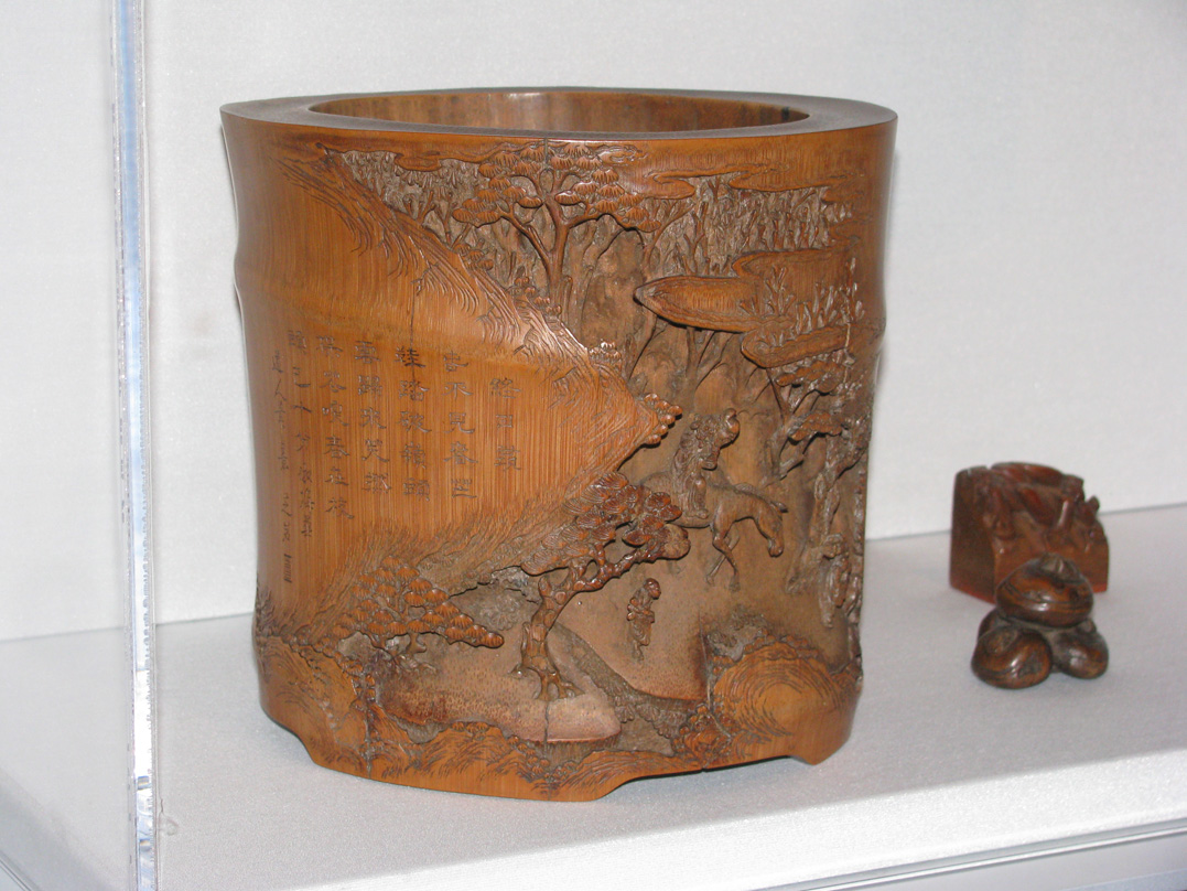 I'm been spacing quite a lot of stuff this week (to busy focusing on things like my book, my aunt and cousin who are visiting, and the like). But it's finally time to talk about my trip to Denver last week. My dad and I went together to see a Weird Al concert but we figured that, as long as we were going, we might as well get there early in the day and do something in the city. In the end, we decided on the art museum due to a combination of location, hours, and a couple other things. While I do like looking at art (some kinds of art, anyway), the main reason I wanted to go there was to see the King Tut exhibit, which is there through the end of the year. Gotta say, the exhibit was pretty cool. There was lots of statue, jewelry, and even some furniture that was all in pretty amazing shape, especially considering that most of it was around 3000 - 45000 years old. I'm pretty sure that makes it the oldest man made things I've ever seen. And wow, the ancient Egyptians were really good at carving. Unfortunately I couldn't take pictures of anything in the exhibit (they wanted you to buy the photo books), but we walked through a few other parts of the museum afterwards, where pictures were allowed. The Asian section was pretty nice. Here's a statue of an Indian monkey god and a cool Japanese folding screen (which they rarely let you photograph in Japan). There was also an special exhibit featuring all sorts of things (baskets, carvings, furniture, etc) made from bamboo. Finally, here's a statue from the American Indian section that my dad really likes.